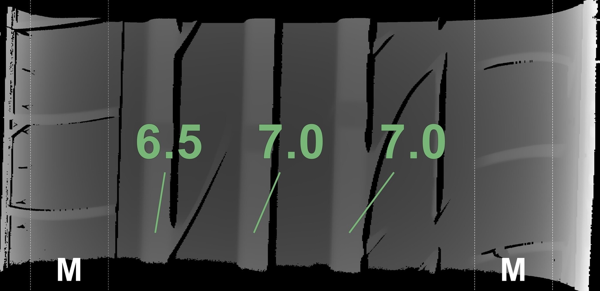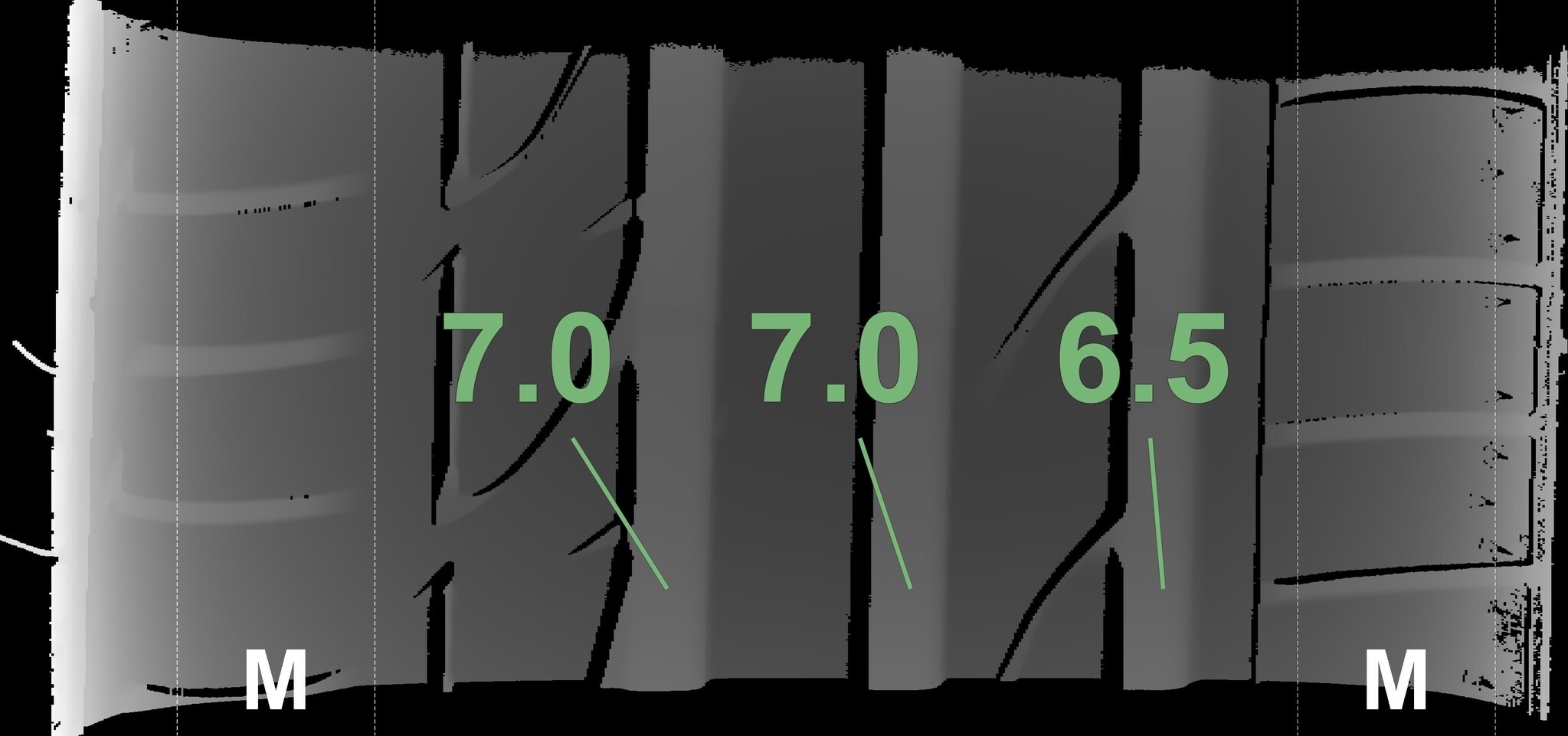 | Zustand | Profiltiefe | DOT | Hinterachse Links | Neu | 7.0 mm | 3523 |