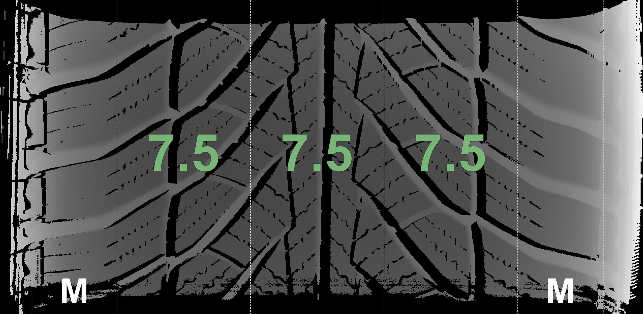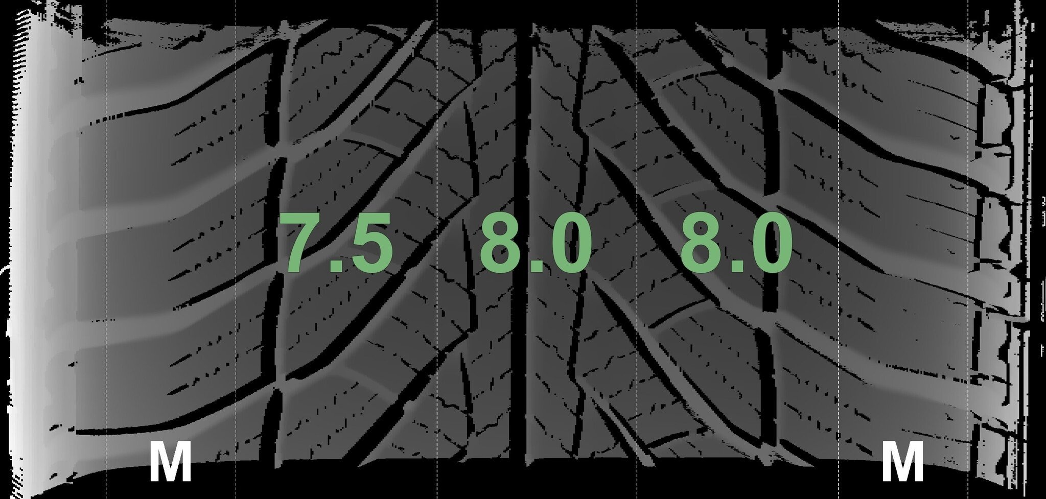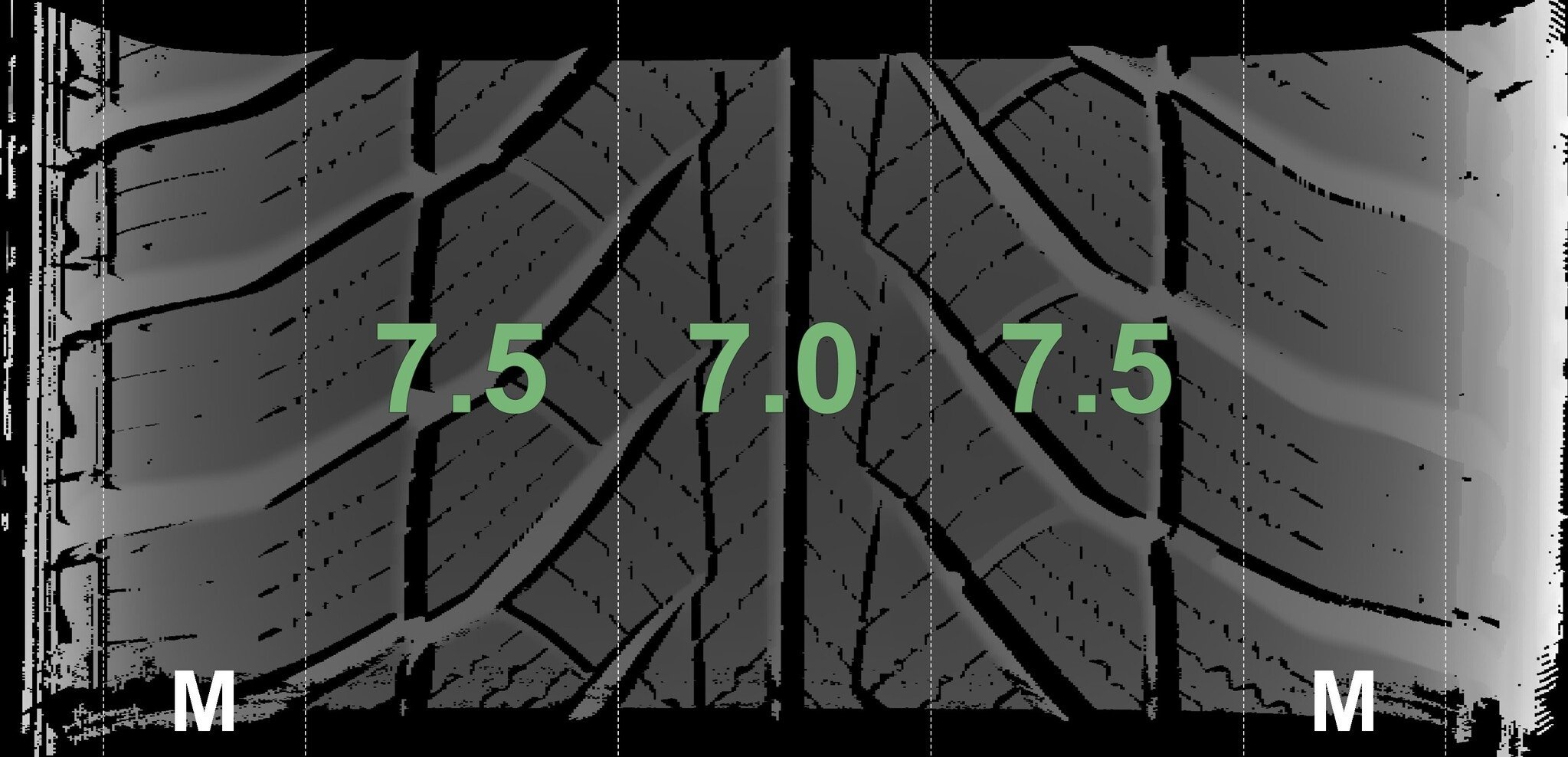 | Zustand | Profiltiefe | DOT | Vorderachse Links | Gebraucht | 7.5 mm | 3519 |