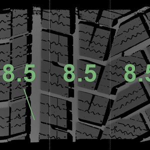 | Zustand | Profiltiefe | DOT | Vorderachse Links | Neu | 8.5 mm | 5025 |