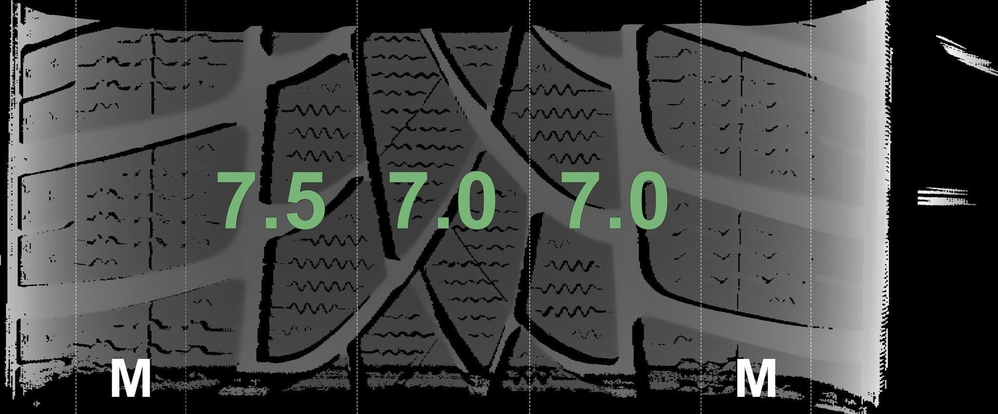 | Zustand | Profiltiefe | DOT | Vorderachse Links | Gebraucht | 7.0 mm | 2316 |