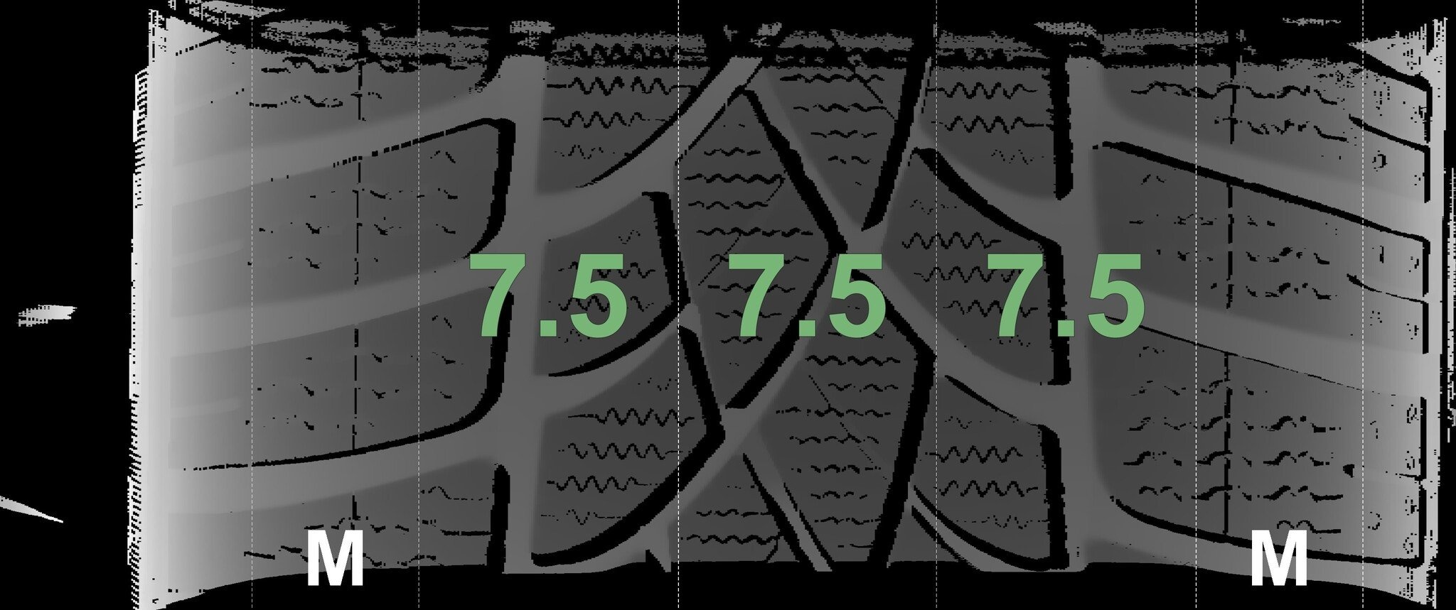 | Zustand | Profiltiefe | DOT | Vorderachse Rechts | Gebraucht | 7.5 mm | 2316 |