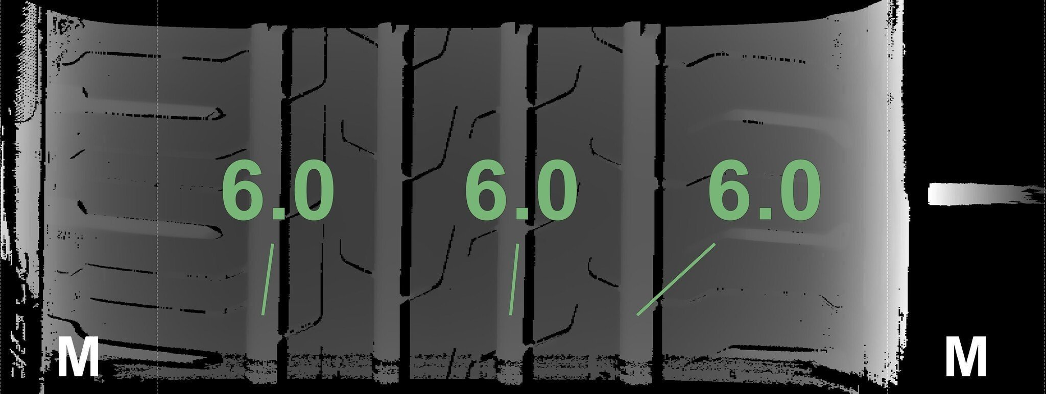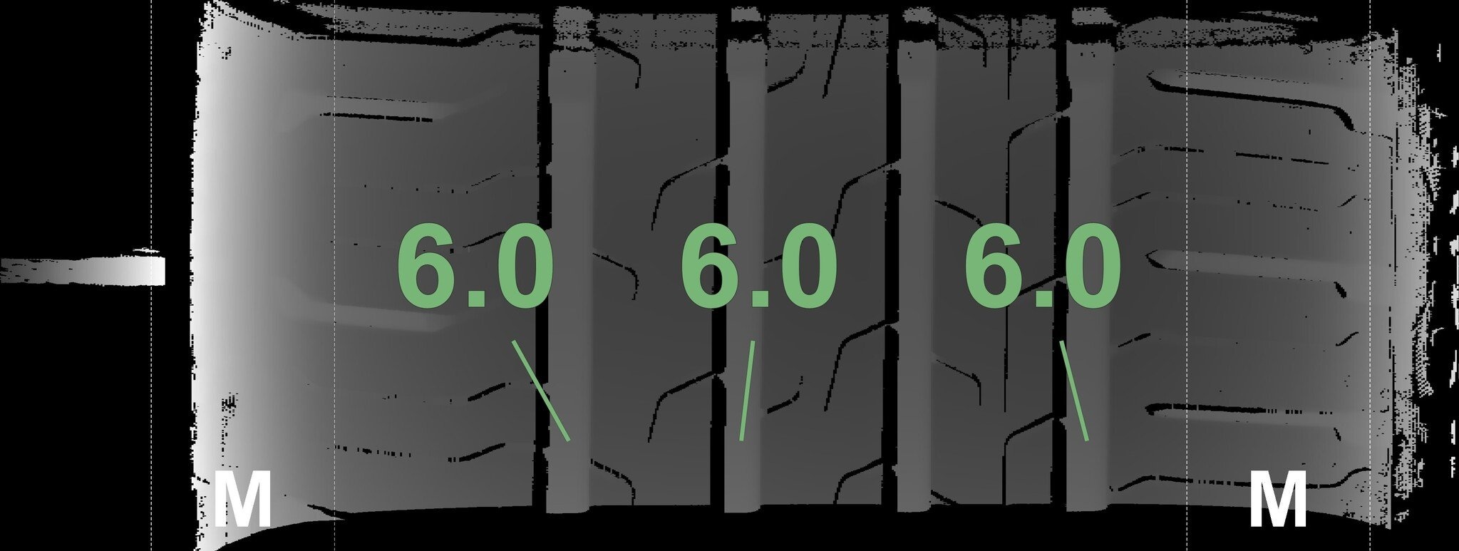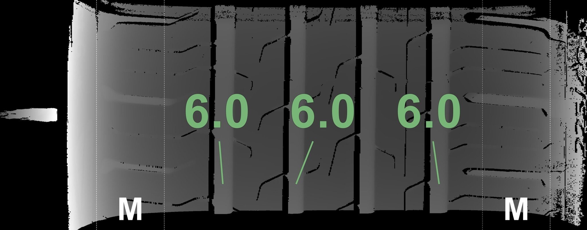 | Zustand | Profiltiefe | DOT | Vorderachse Links | Neu | 6.0 mm | 1522 |