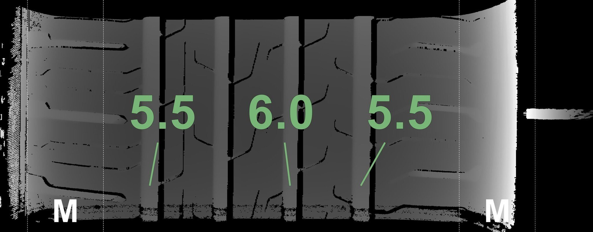 | Zustand | Profiltiefe | DOT | Vorderachse Rechts | Neu | 5.7 mm | 1522 |