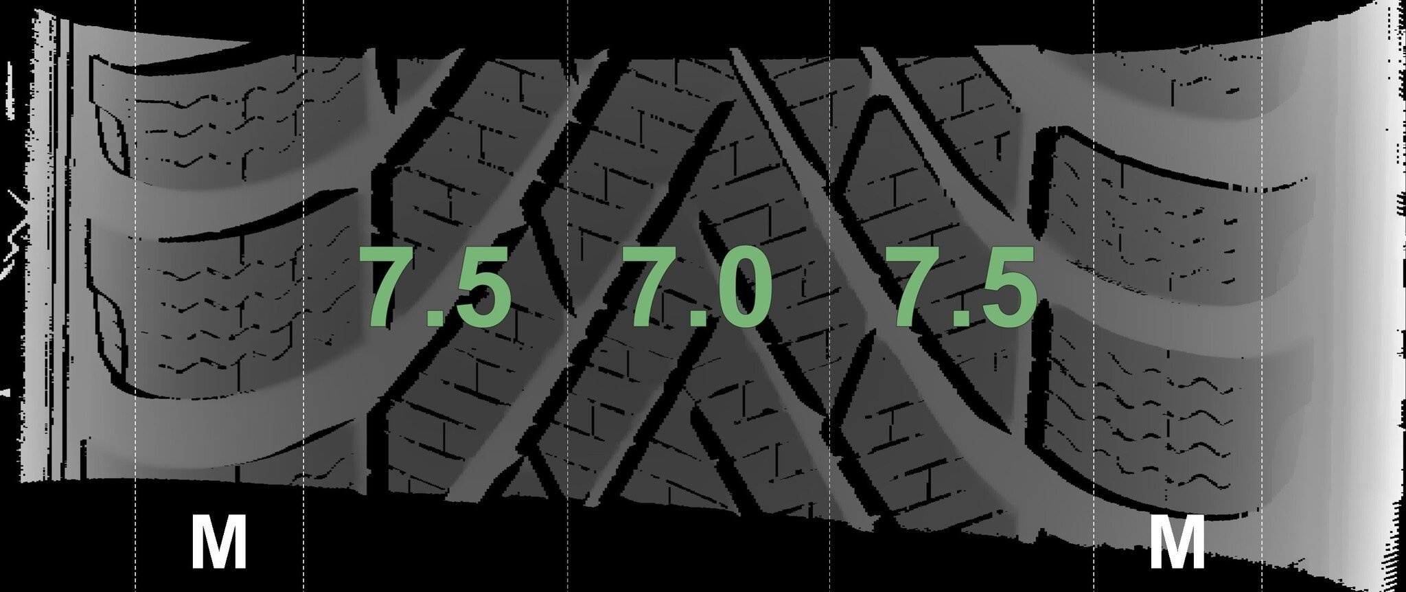 | Zustand | Profiltiefe | DOT | Vorderachse Links | Neu | 7.0 mm | 4019 |
