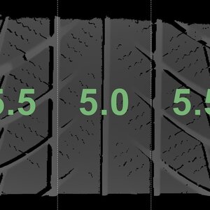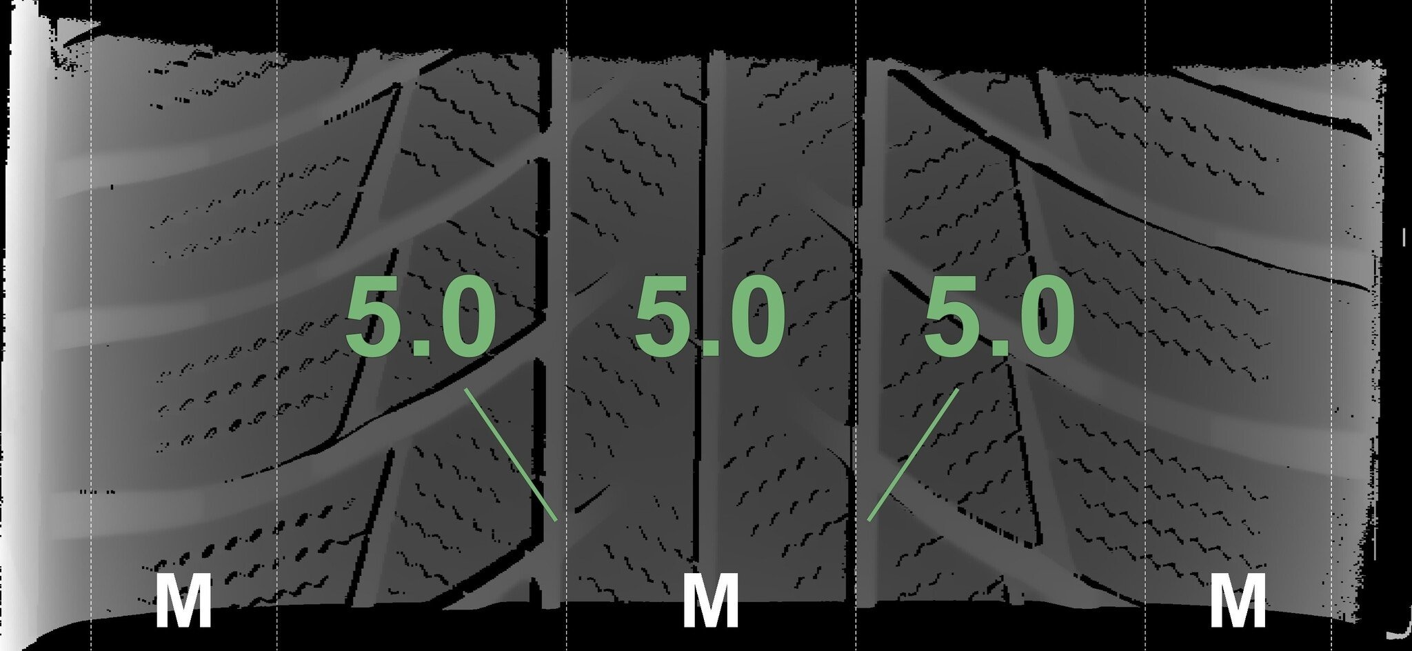 Die gemessenen Profiltiefen und die Details der Felgen sind oben dargestellt.