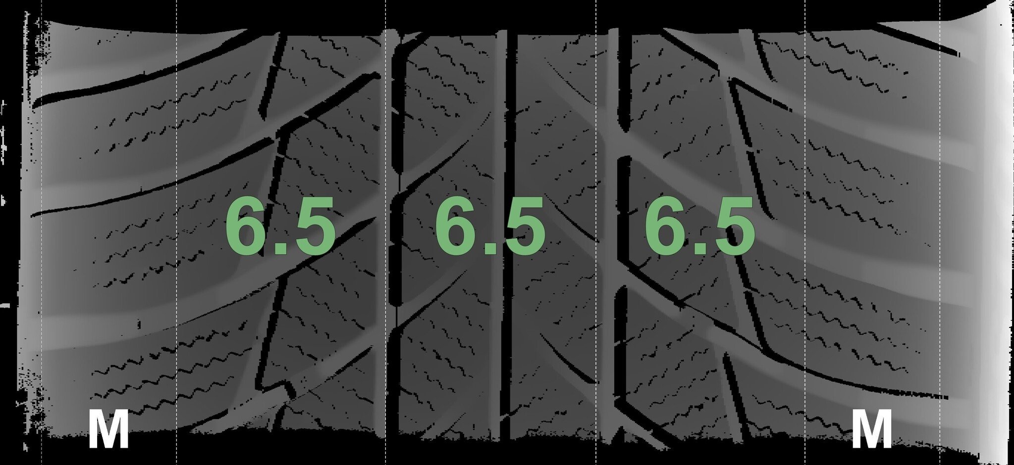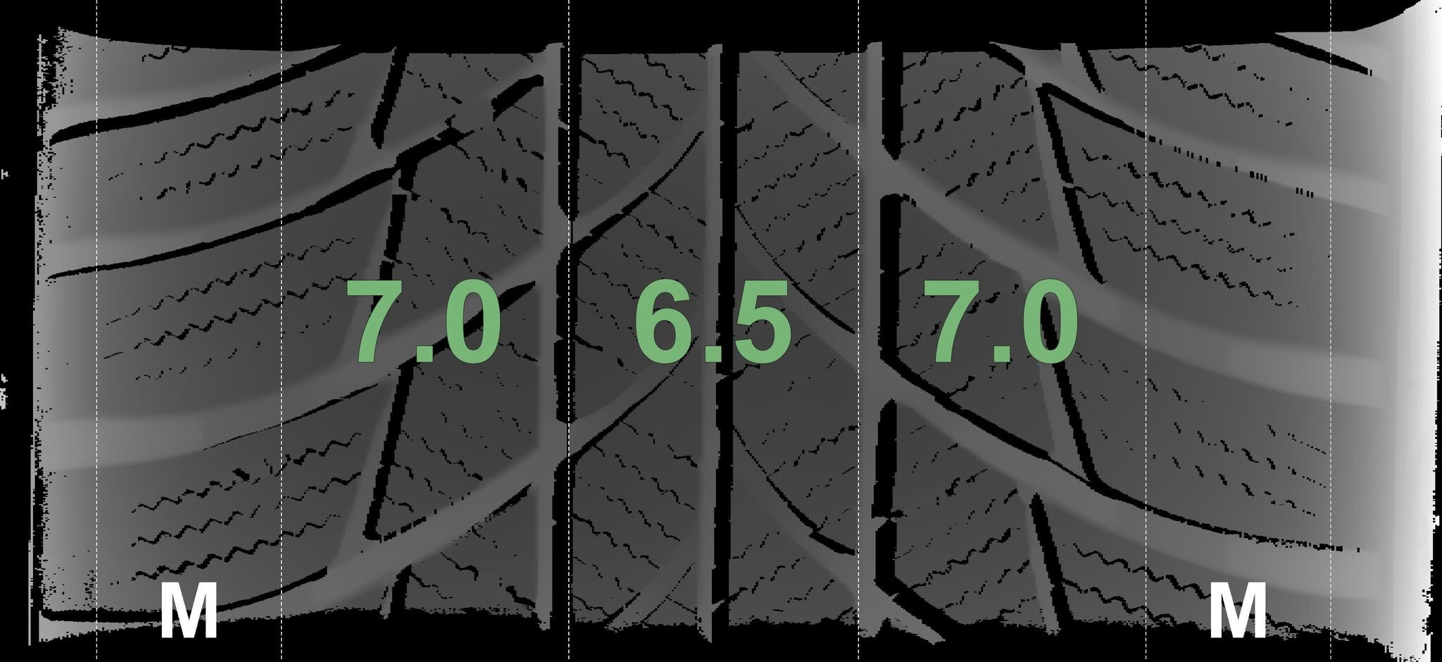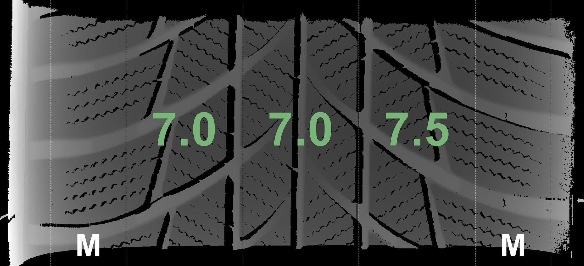 Die gemessenen Profiltiefen und die Details der Felgen sind oben dargestellt.