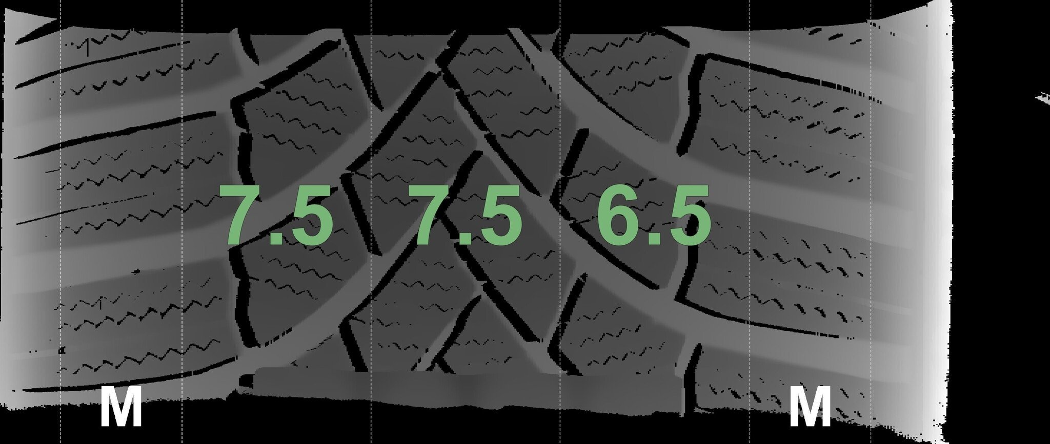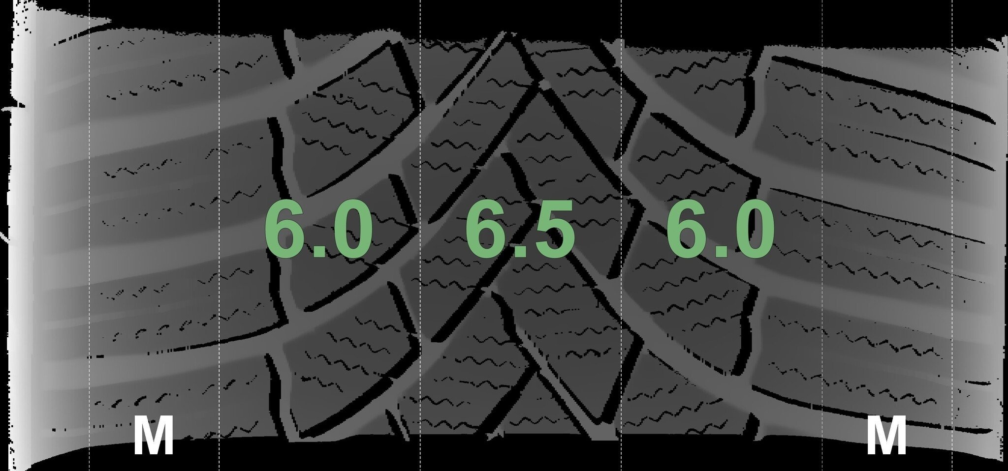 Die gemessenen Profiltiefen und die Details der Felgen sind oben angezeigt.