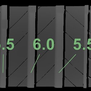 Die gemessenen Profiltiefen und die Details der Felgen sind oben angegeben.