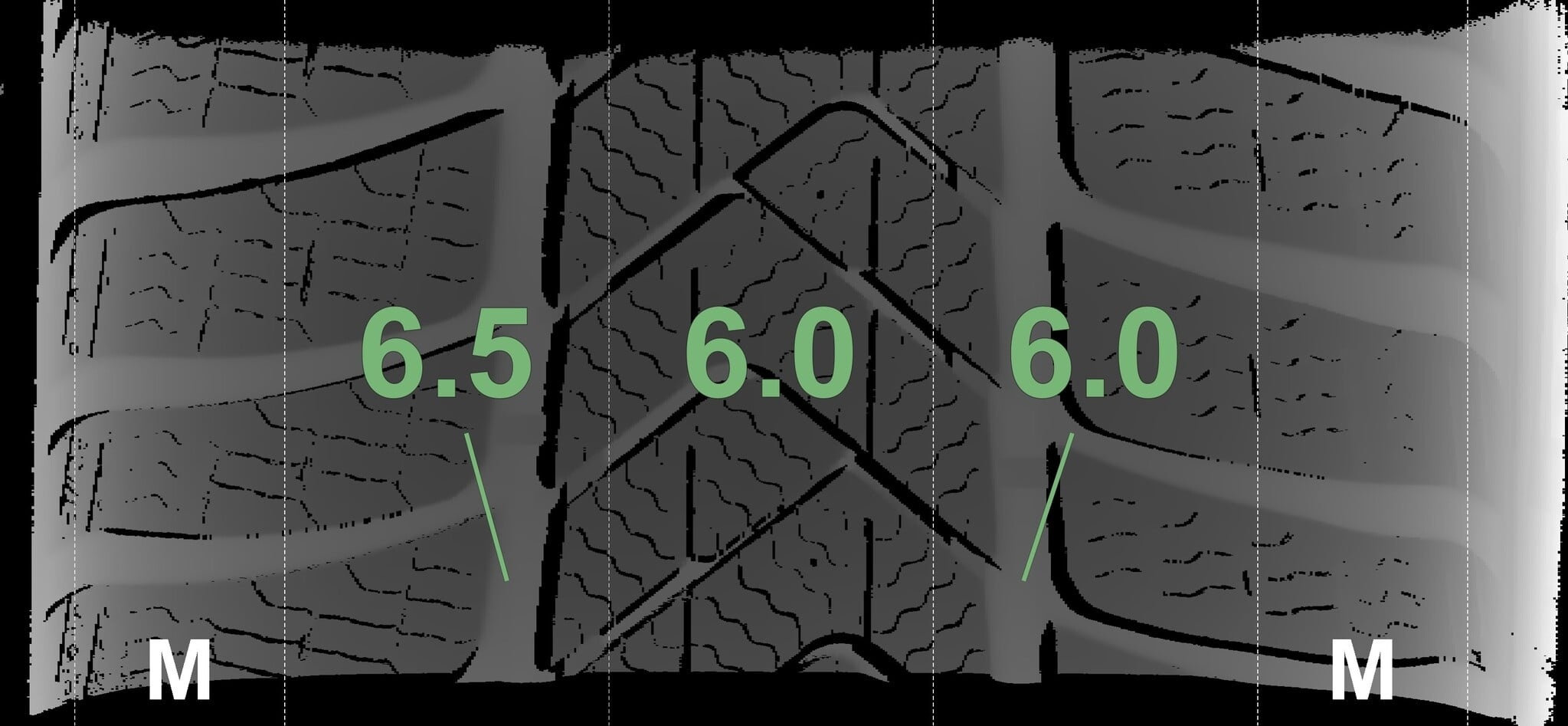 Die gemessenen Profiltiefen und die Details der Felgen sind oben angegeben.