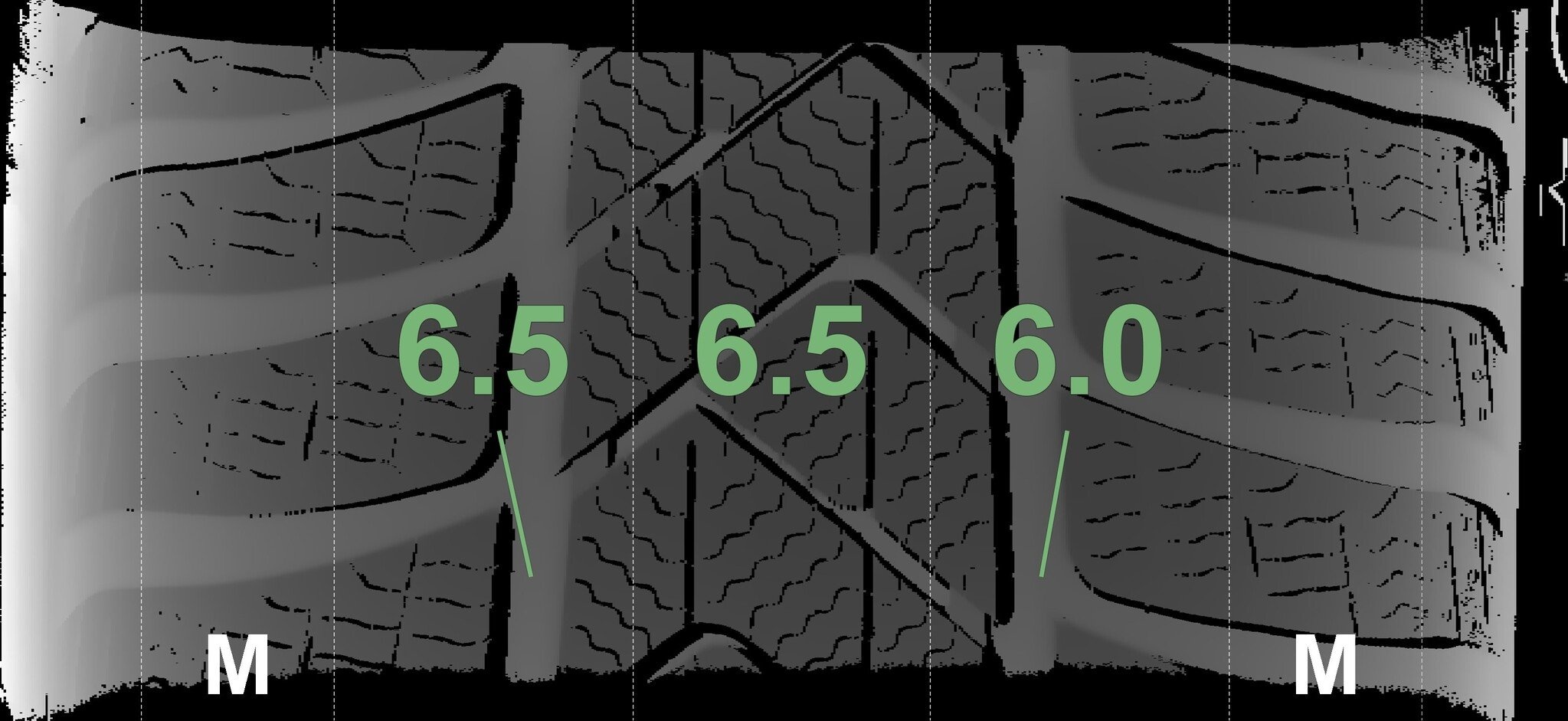 | Zustand | Profiltiefe | DOT | Vorderachse Links | Gebraucht | 6.3 mm | 2819 |