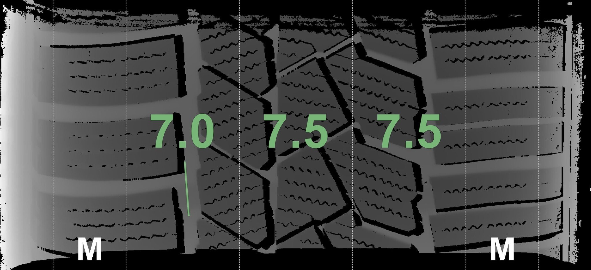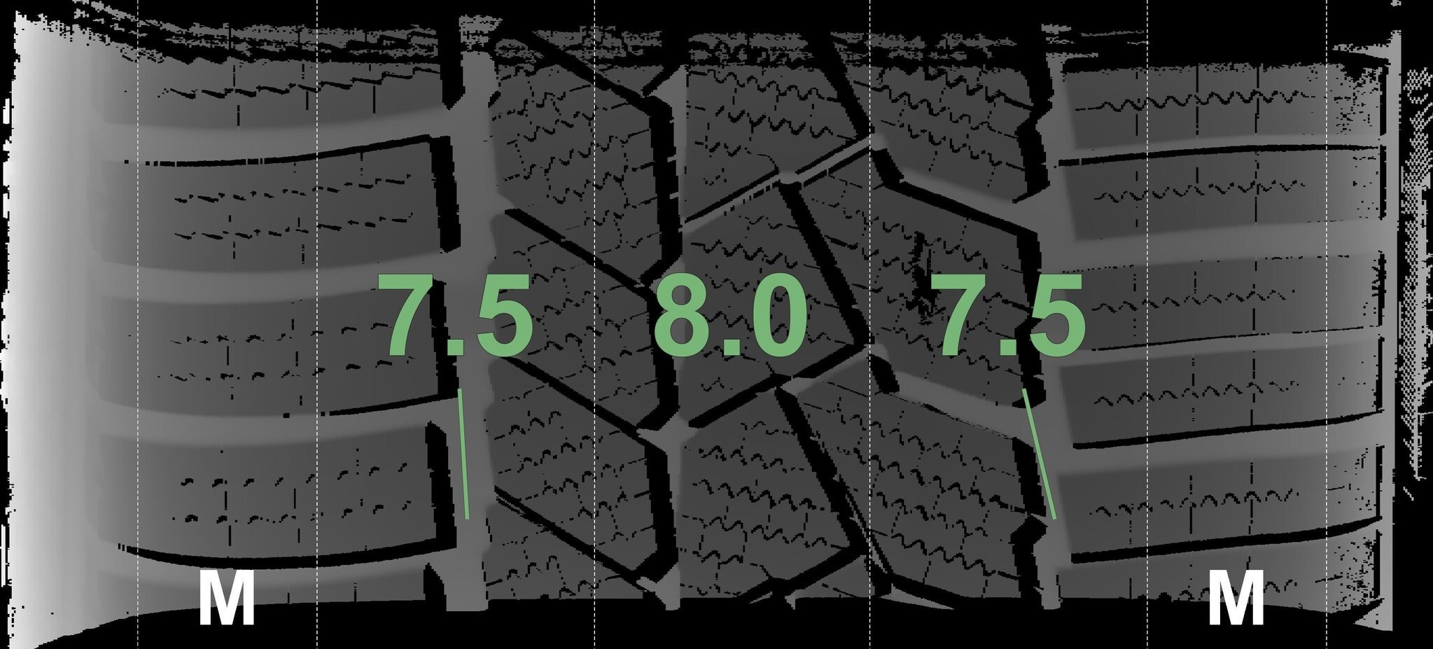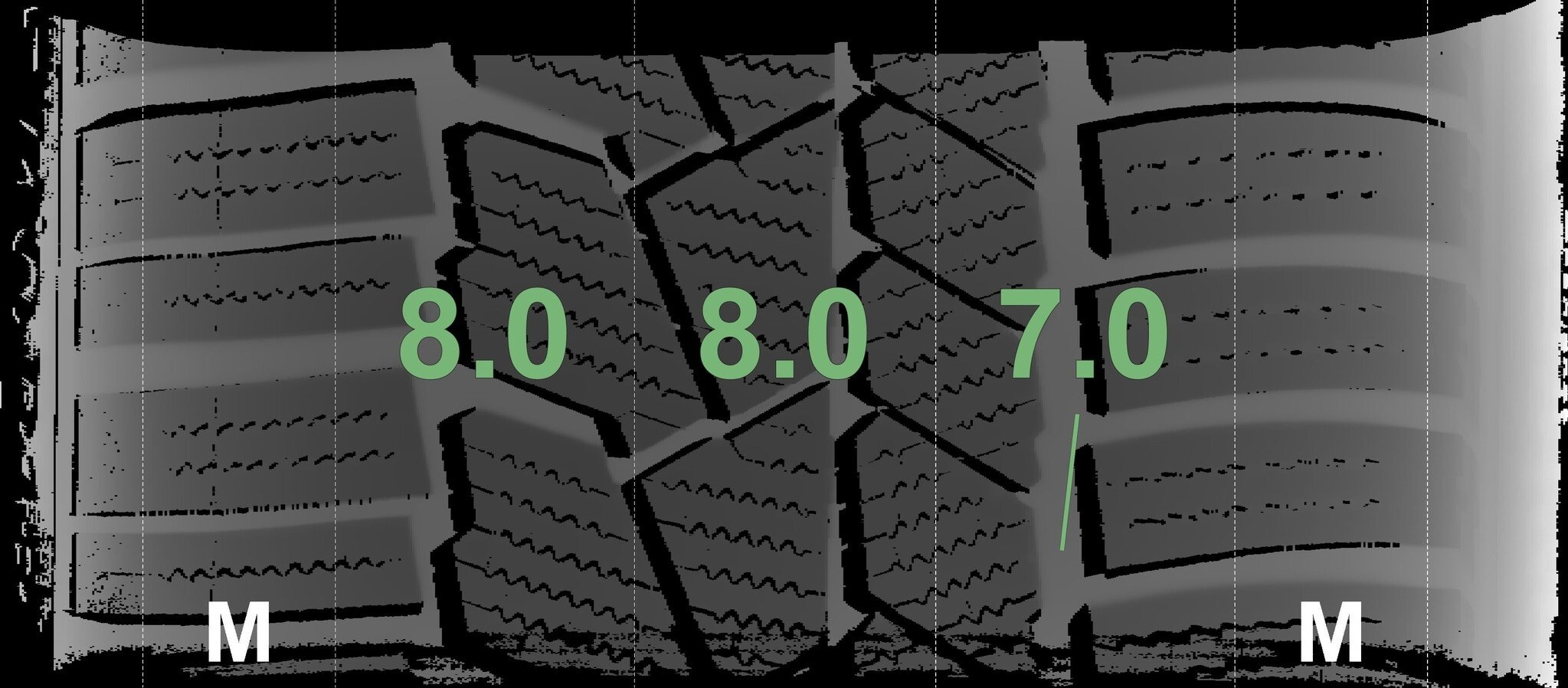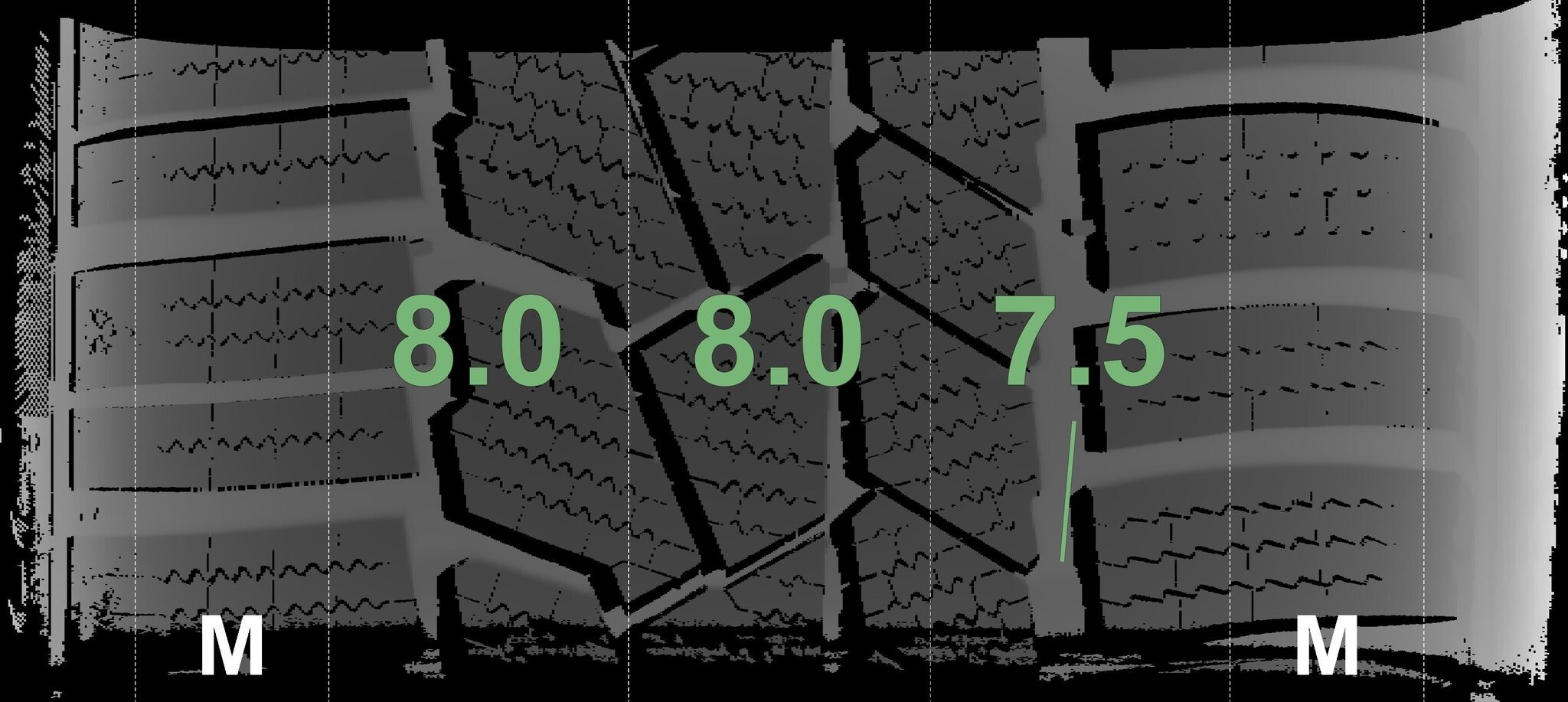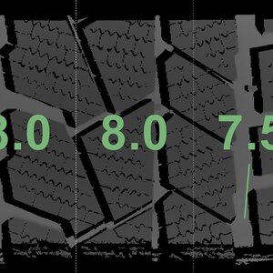 Die gemessenen Profiltiefen und die Details der Felgen sind oben angezeigt.