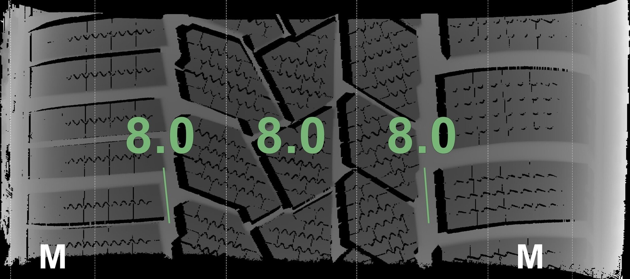 | Zustand | Profiltiefe | DOT | Hinterachse Rechts | Neu | 8.0 mm | 4120 |