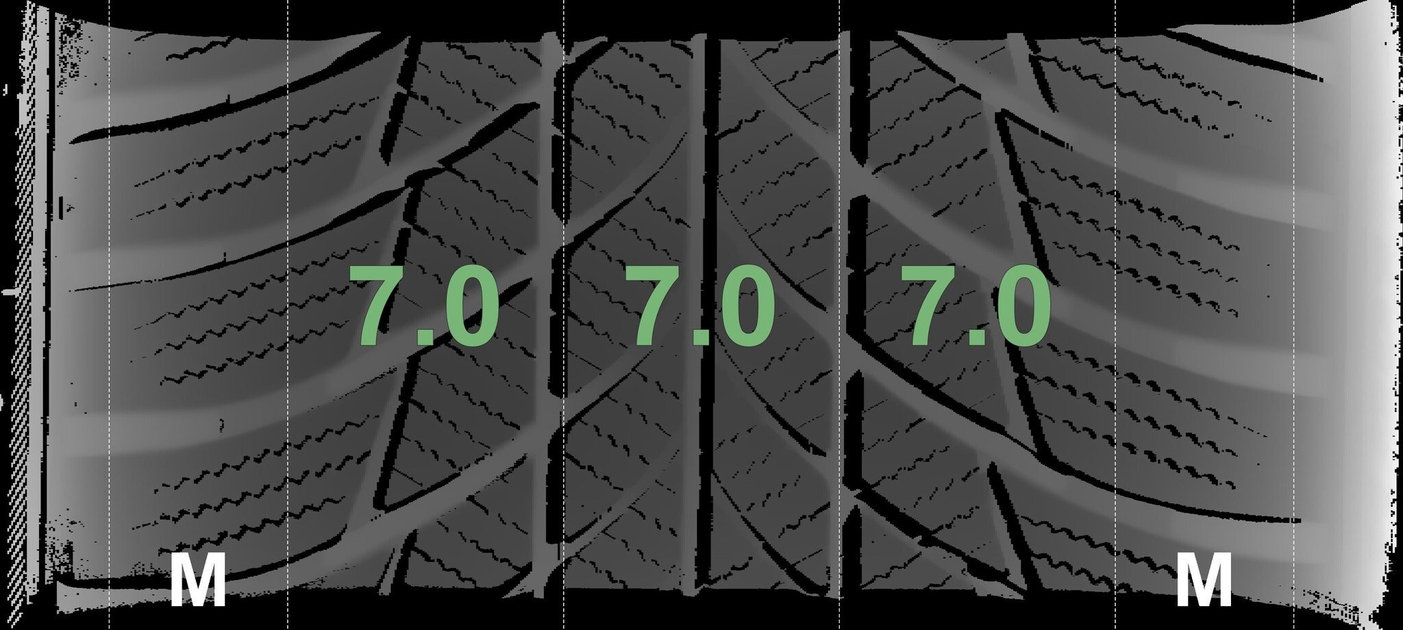Die gemessenen Profiltiefen und die Details der Felgen sind hierboven weergegeven.