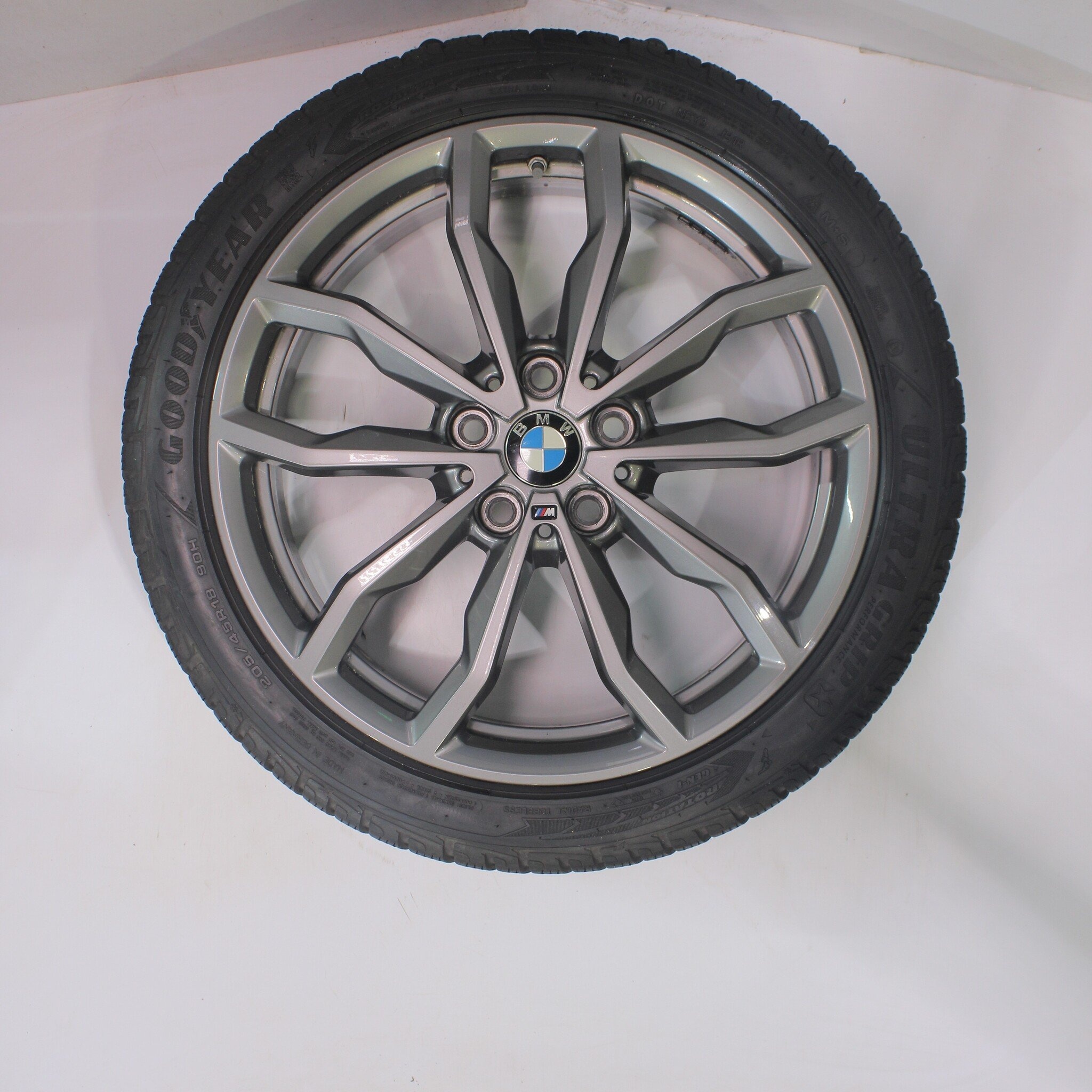 Original-Radsatz von BMW, Styling 711M, 18 Zoll Felgen mit Goodyear ULTRAGRIP PERFORMANCE GEN-1 Winterkompletträdern. Deze velgen zijn originele velgen van het merk BMW en geschikt voor: BMW 1 2 er F40 F44 2 er Gran Coupe.