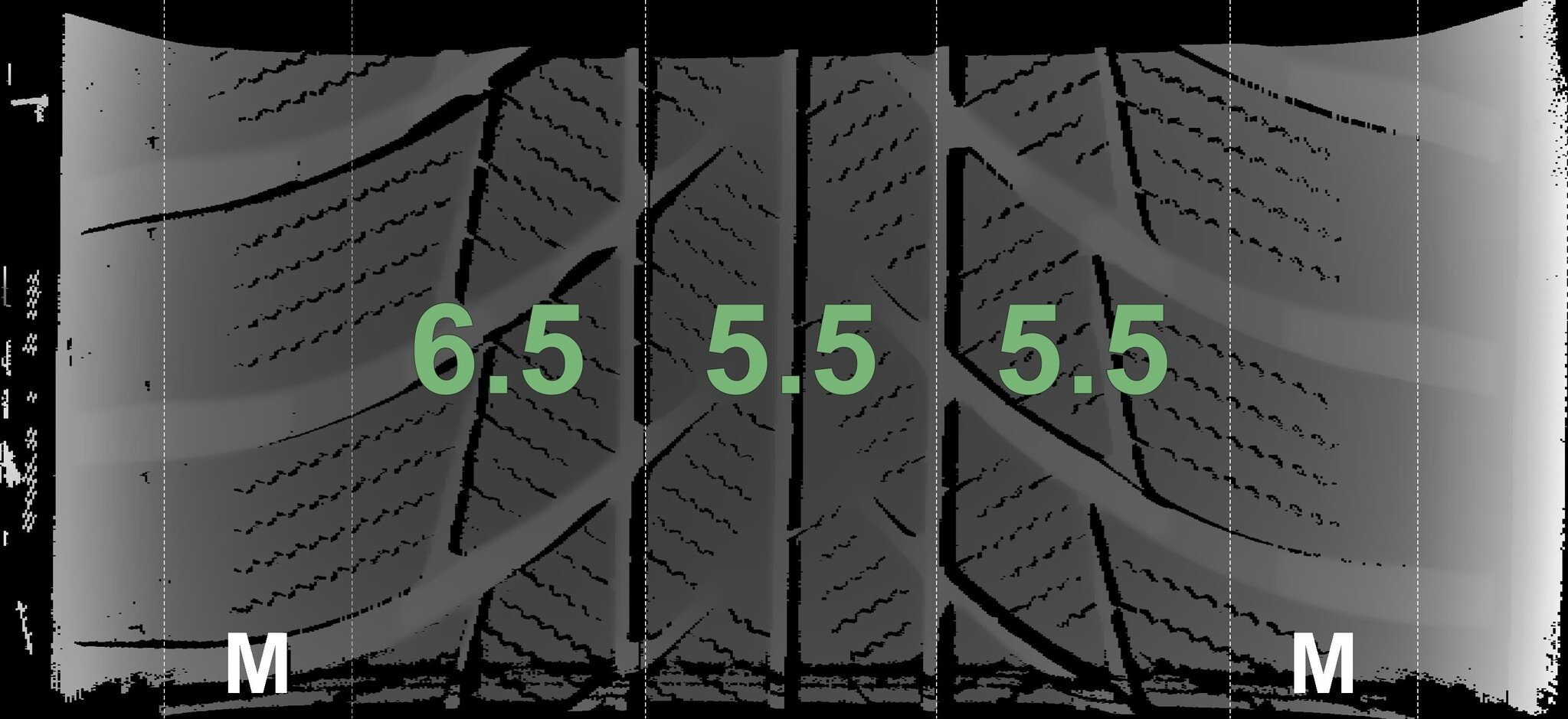 Die gemessenen Profiltiefen und Details zu den Felgen sind oben abgebildet.