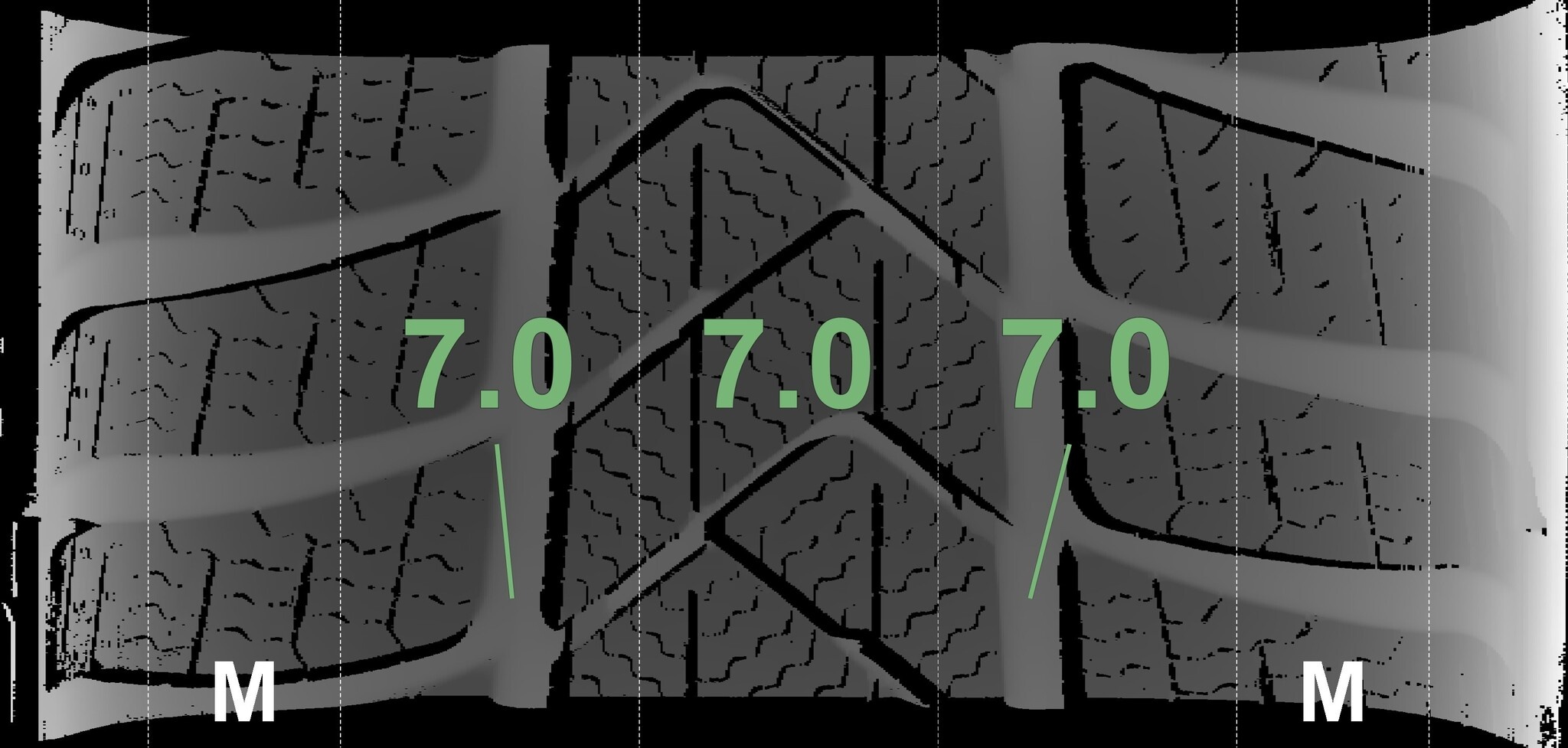Die gemessenen Profiltiefen und Details zu den Felgen sind oben abgebildet.
