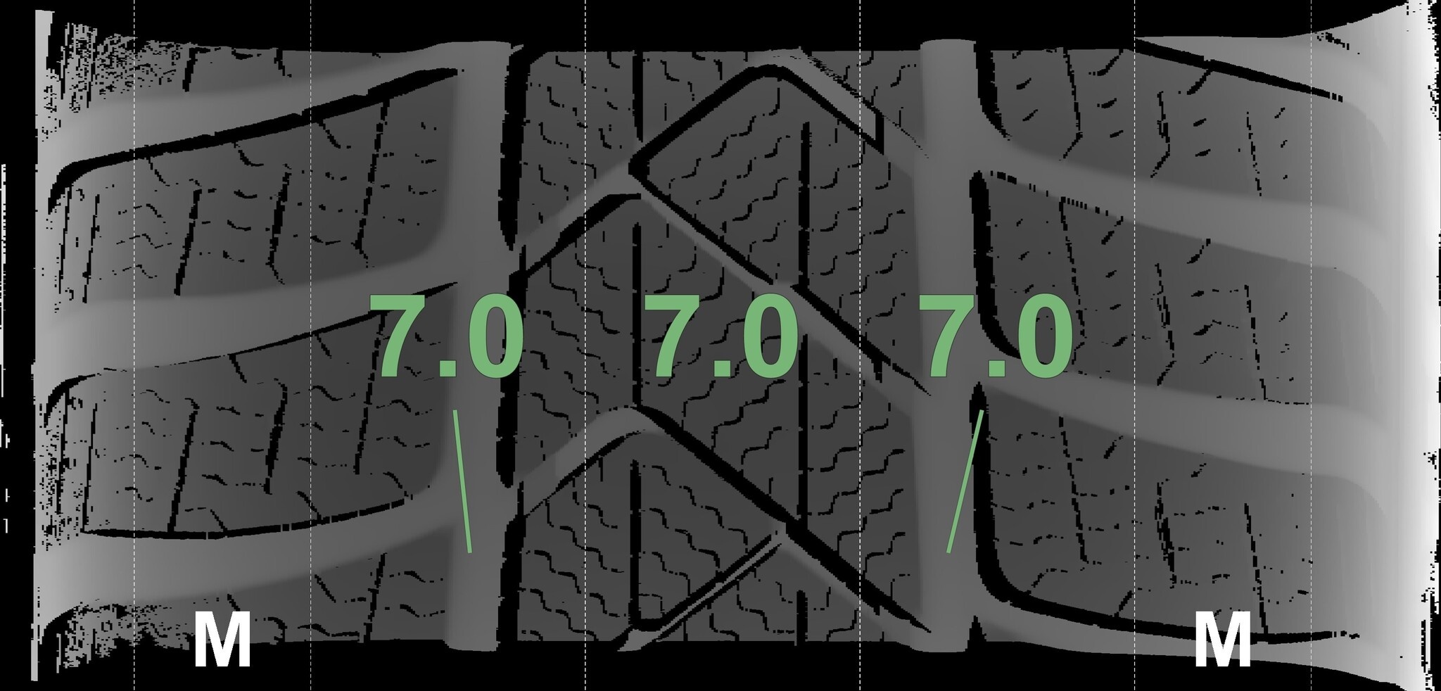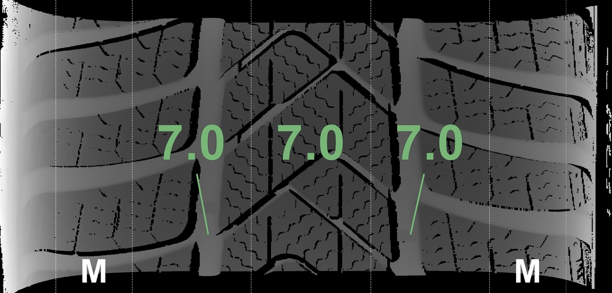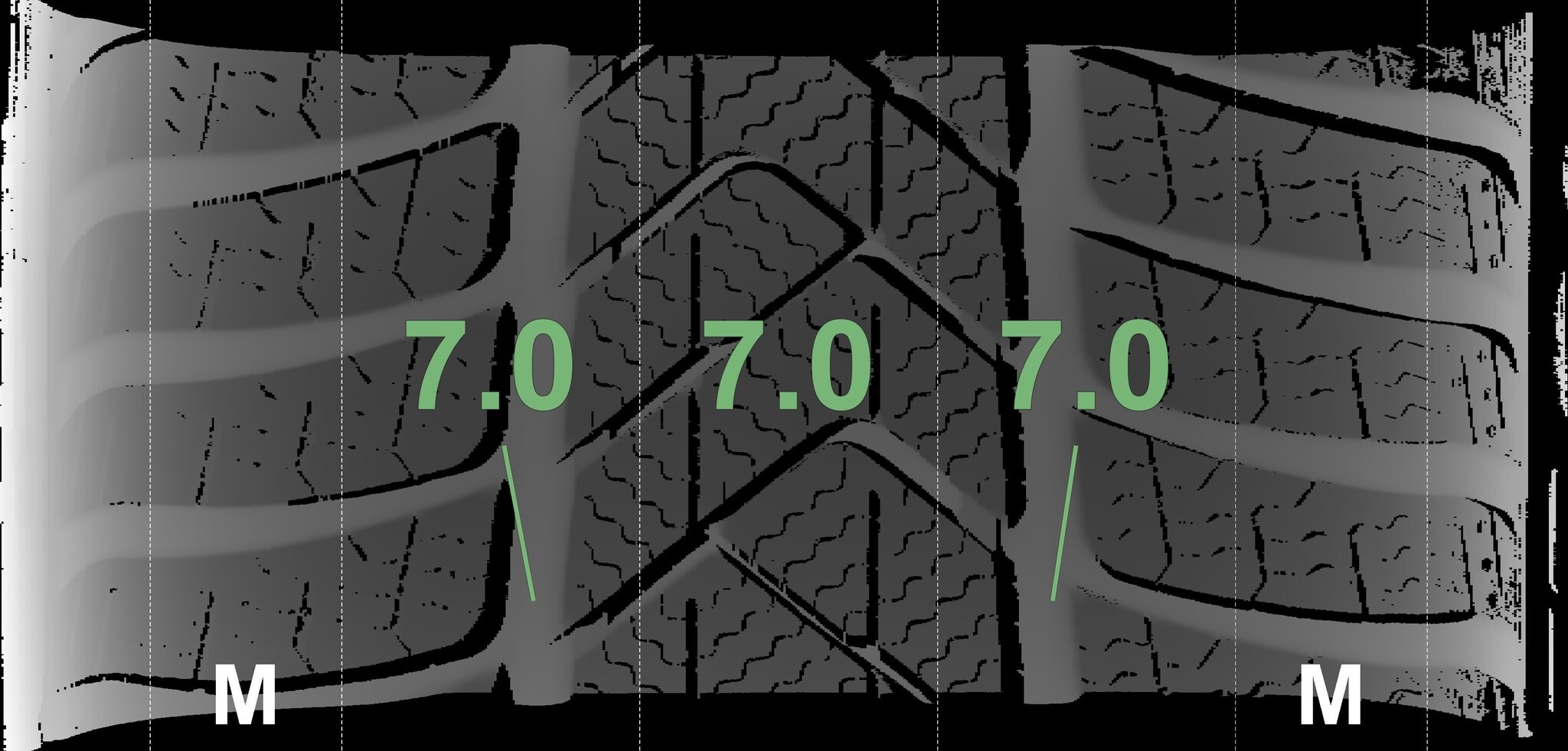Zustand | Profiltiefe | DOT | Hinterachse Rechts | Neu | 7,0 mm | 4621 |