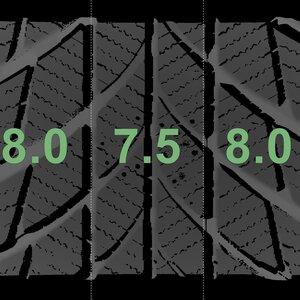 | Zustand | Profiltiefe | DOT | Vorderachse Rechts | Neu | 7,5 mm | 2622 |