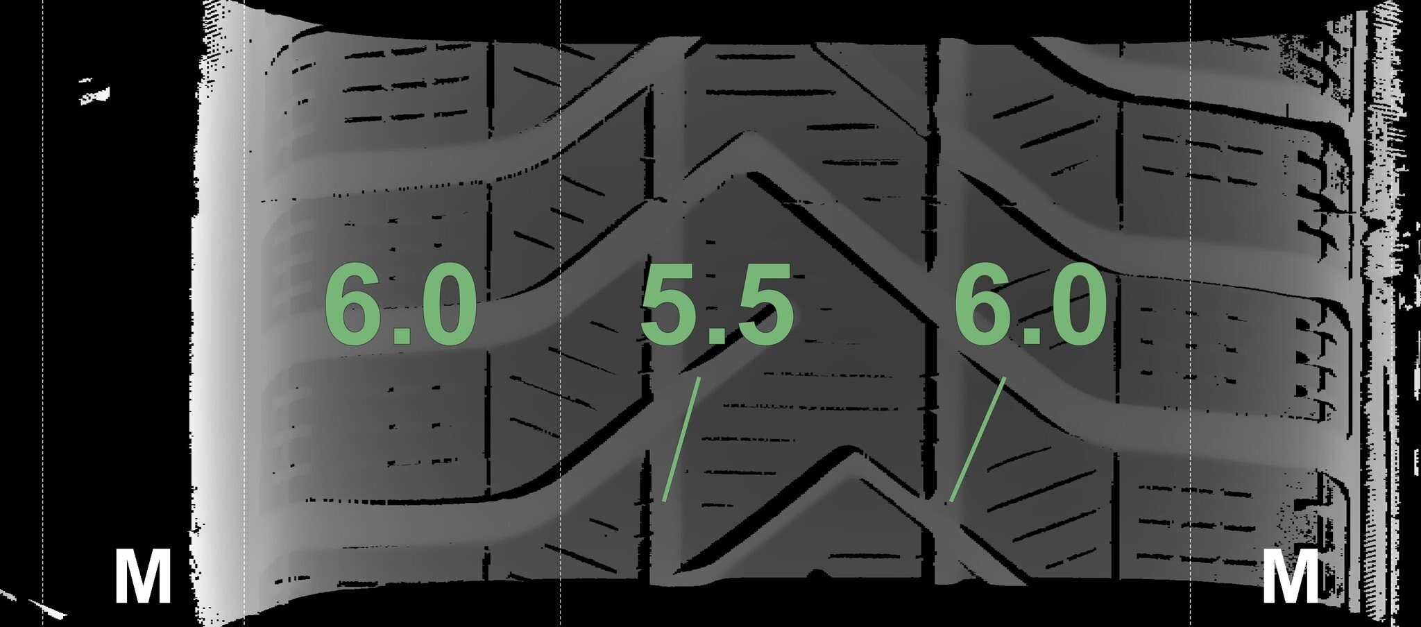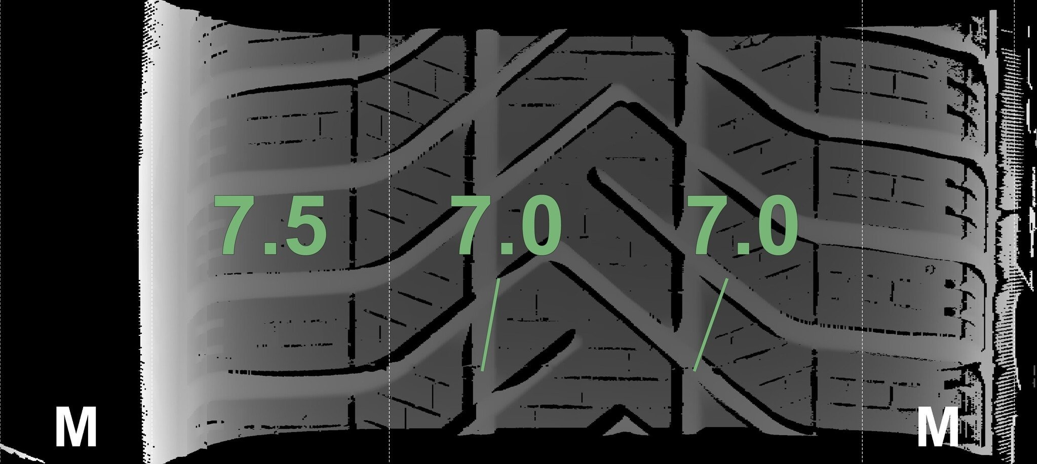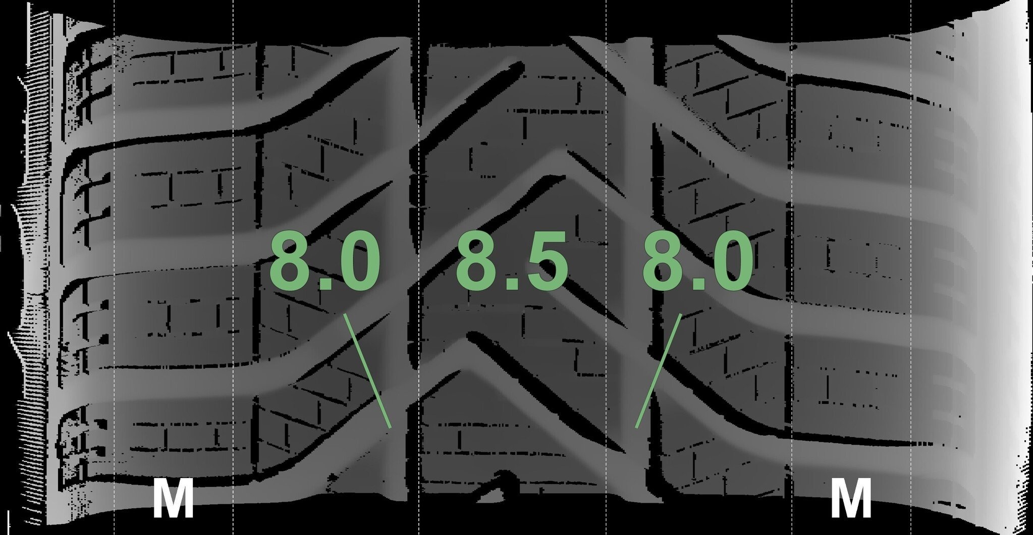 Die gemessenen Profiltiefen und Details zu den Felgen sind oben abgebildet.