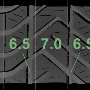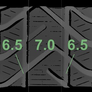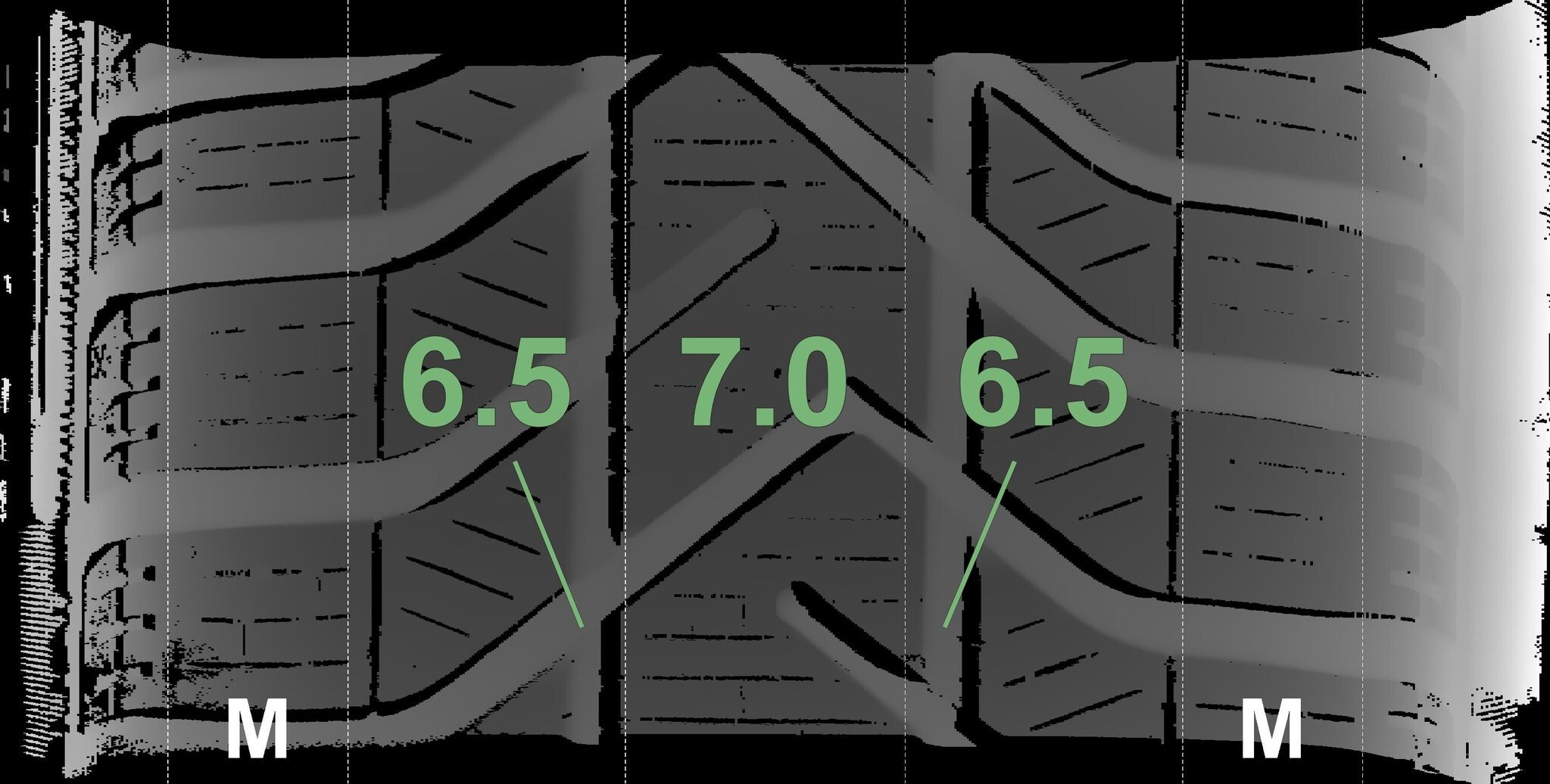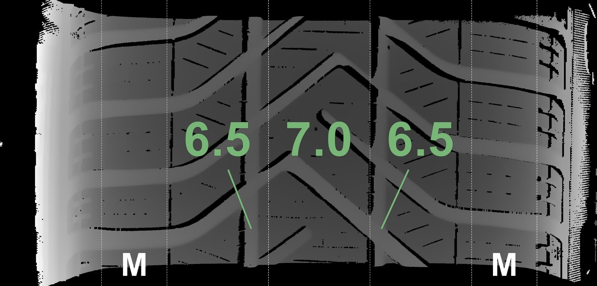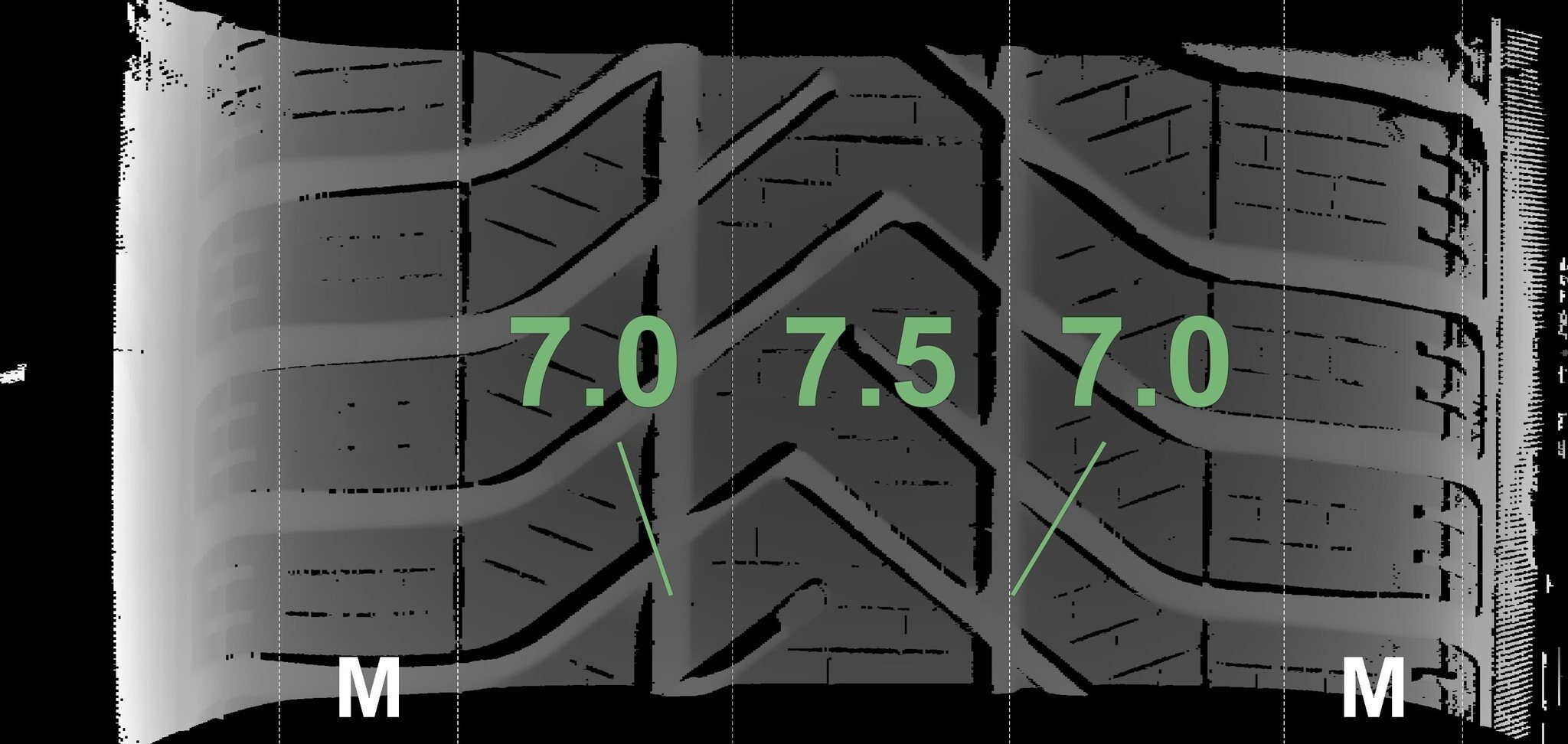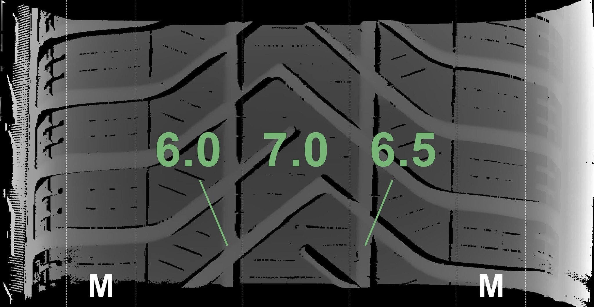 Die gemessenen Profiltiefen und Details der Felgen sind oben abgebildet.
