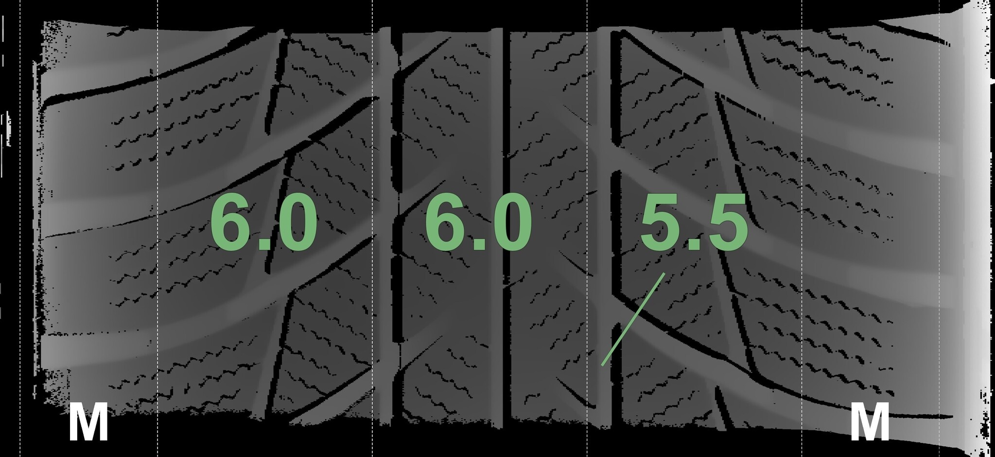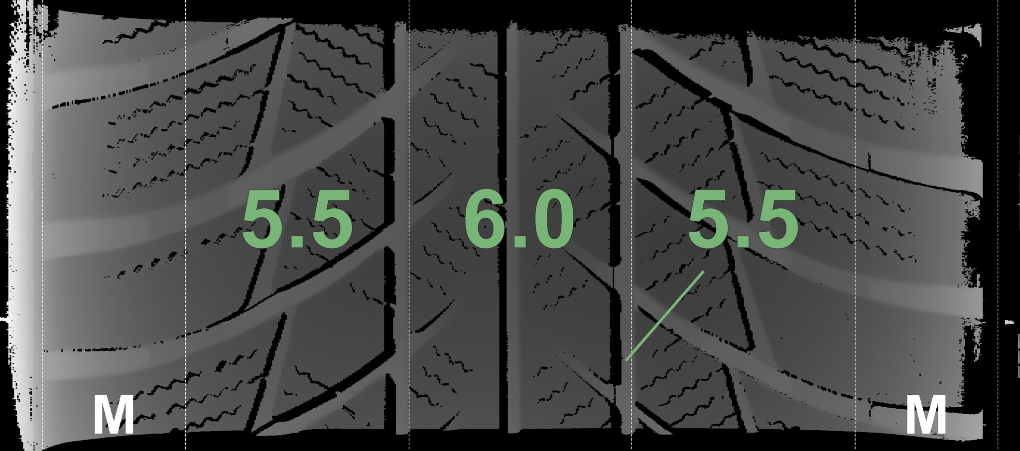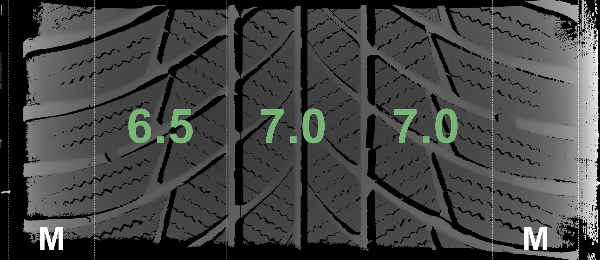 Die gemessenen Profiltiefen und Details zu den Felgen sind oben abgebildet.