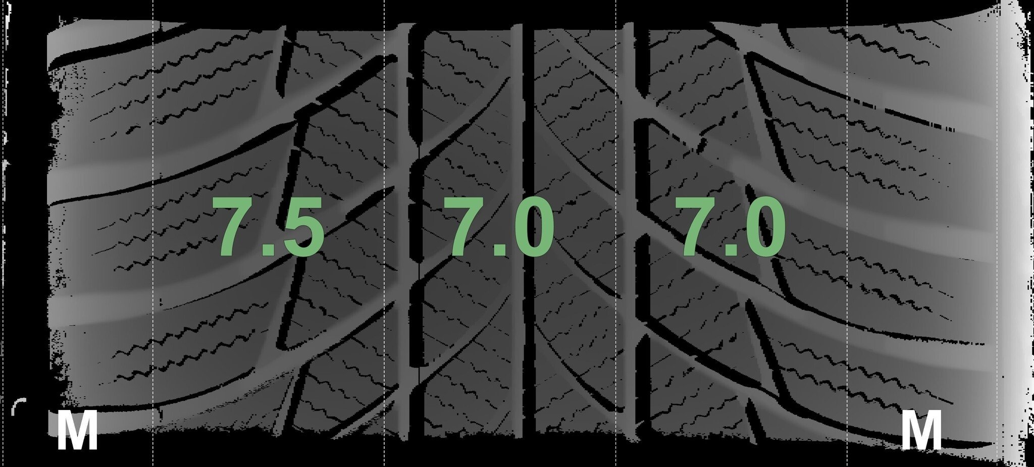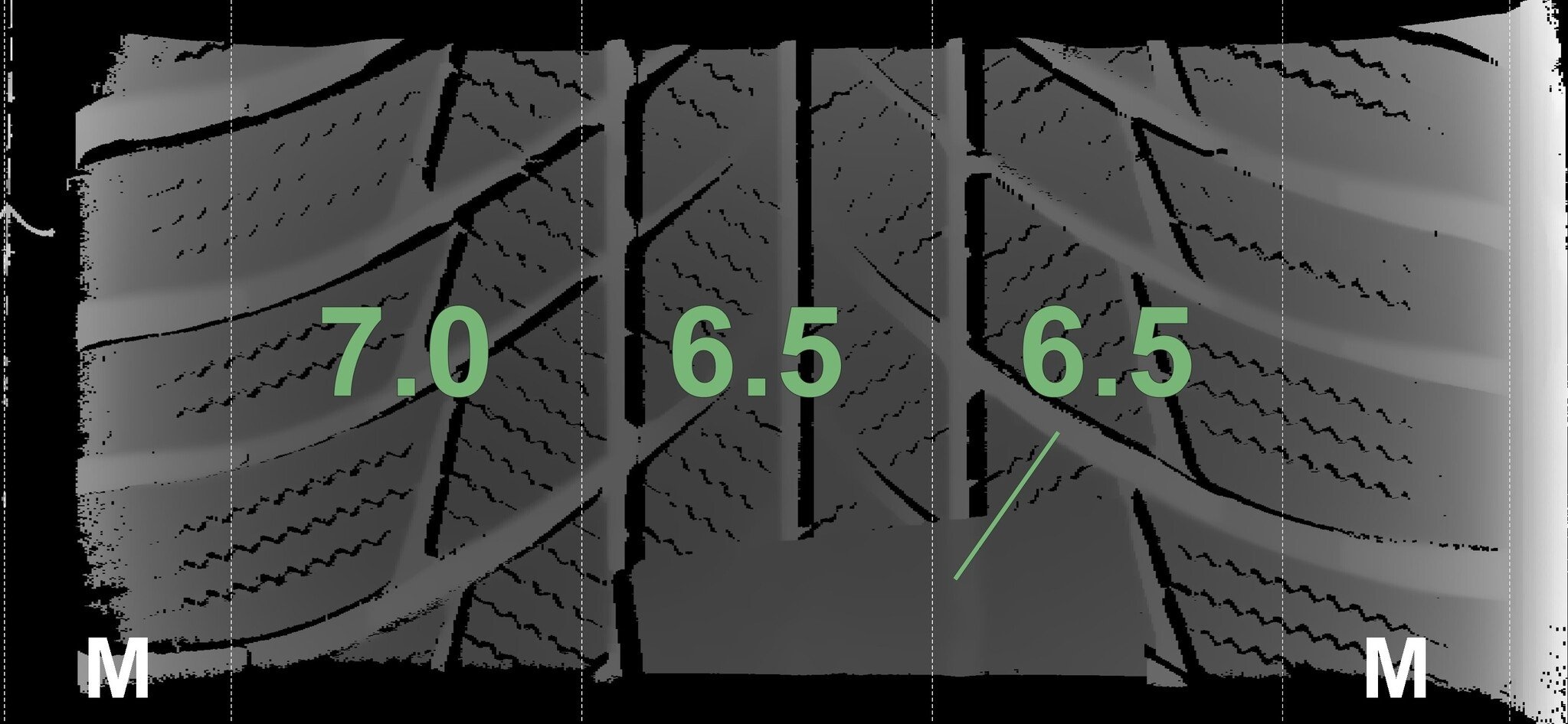 Zustand | Profiltiefe | DOT | Vorderachse Rechts | Gebraucht | 6,5 mm | 3319 |