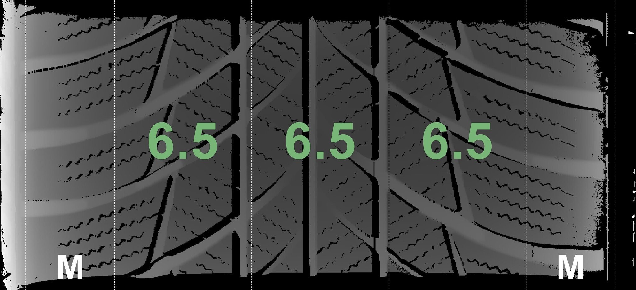 Zustand | Profiltiefe | DOT | Vorderachse Links | Gebraucht | 6,5 mm | 3319 |