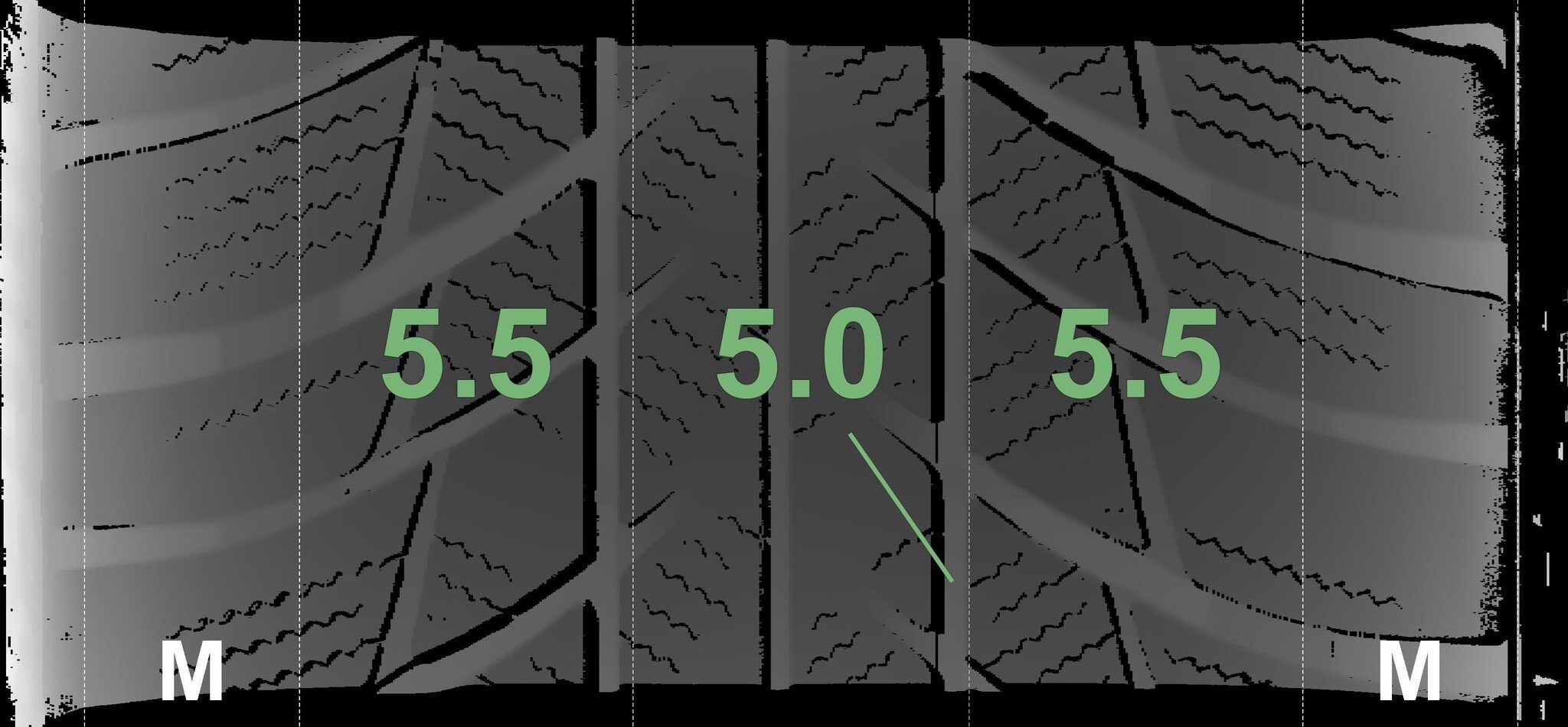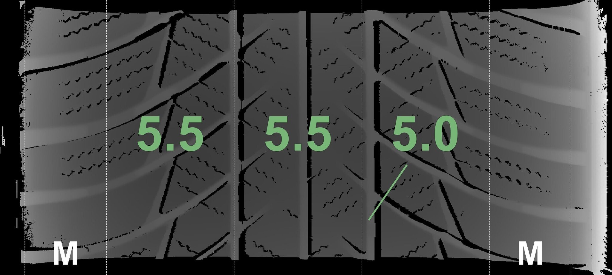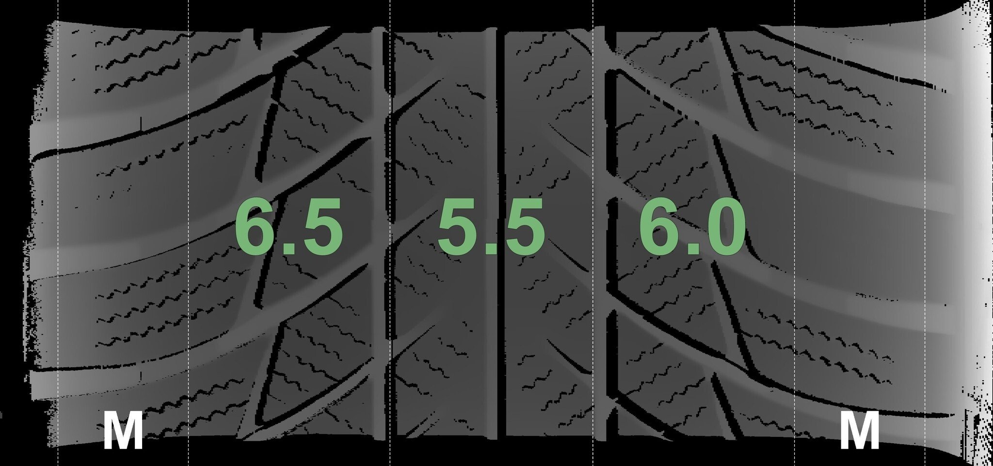 Die gemessenen Profiltiefen und Details zu den Felgen sind oben abgebildet.