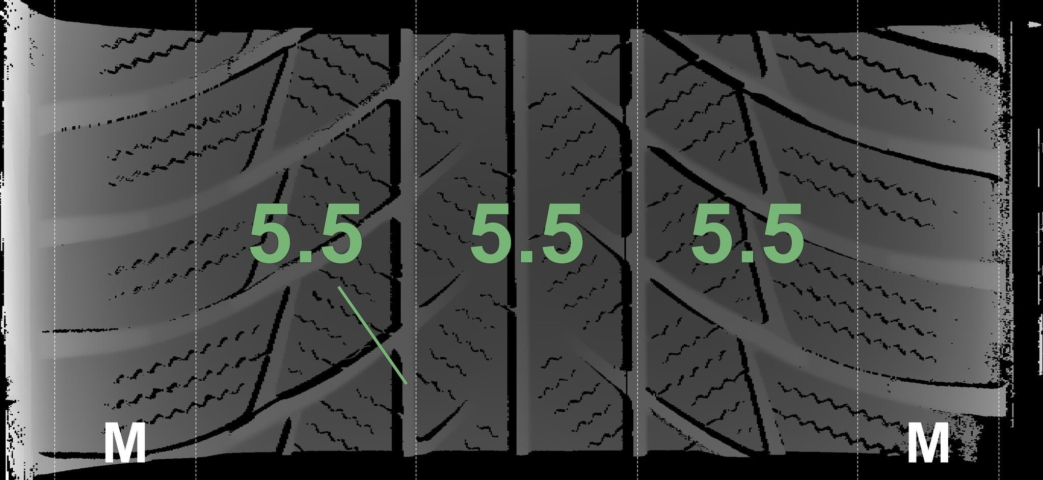 Zustand | Profiltiefe | DOT | Hinterachse Rechts | Gebraucht | 5,5 mm | 3319 |