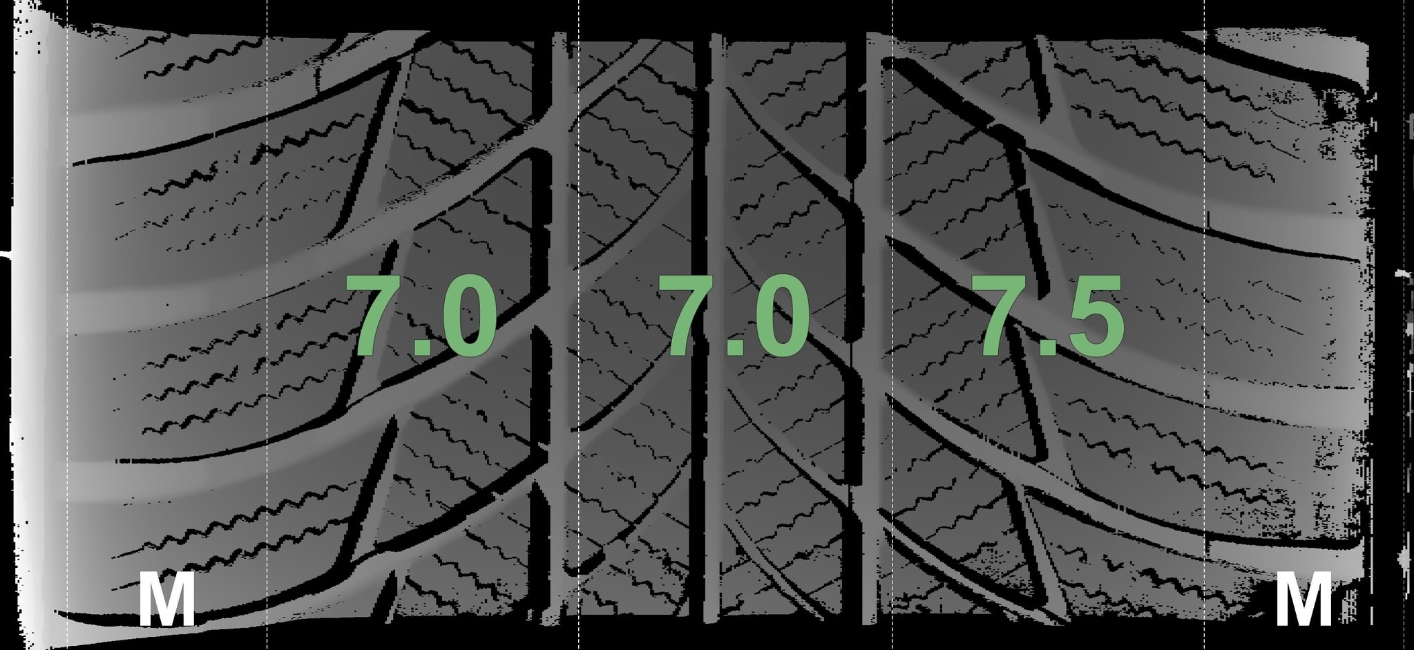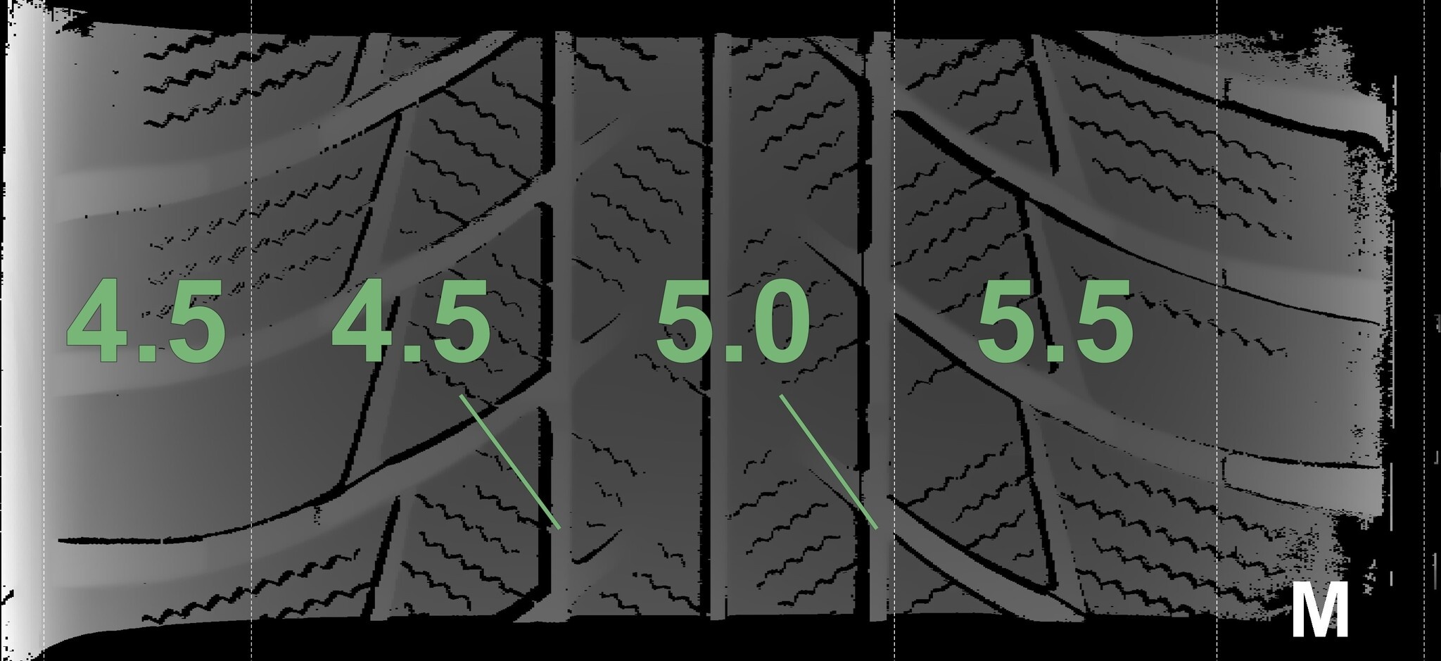 Die gemessenen Profiltiefen und Details zu den Felgen sind oben abgebildet.