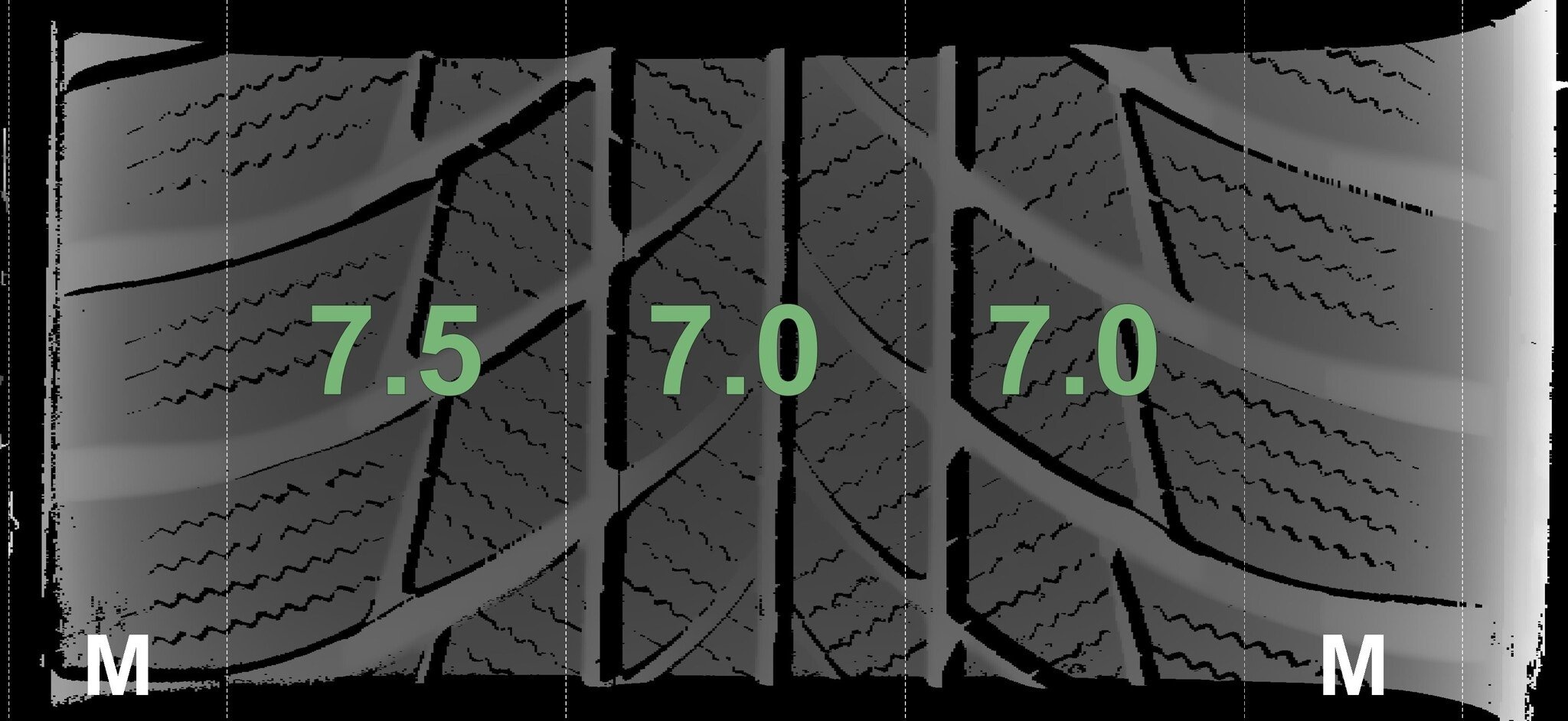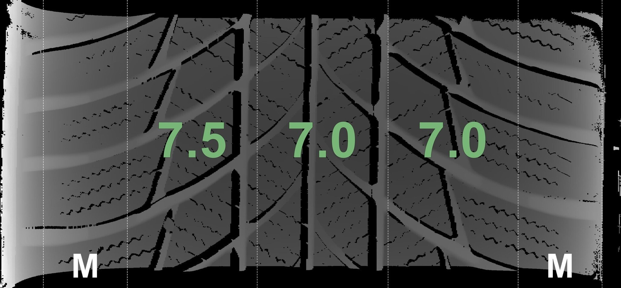 | Zustand | Profiltiefe | DOT | Hinterachse Links | Gebraucht | 7,0 mm | 3019 |