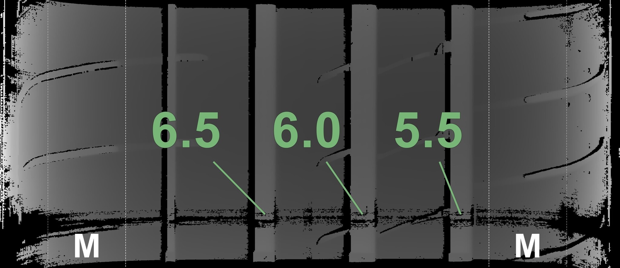 Die gemessenen Profiltiefen und Details zu den Felgen sind oben abgebildet.