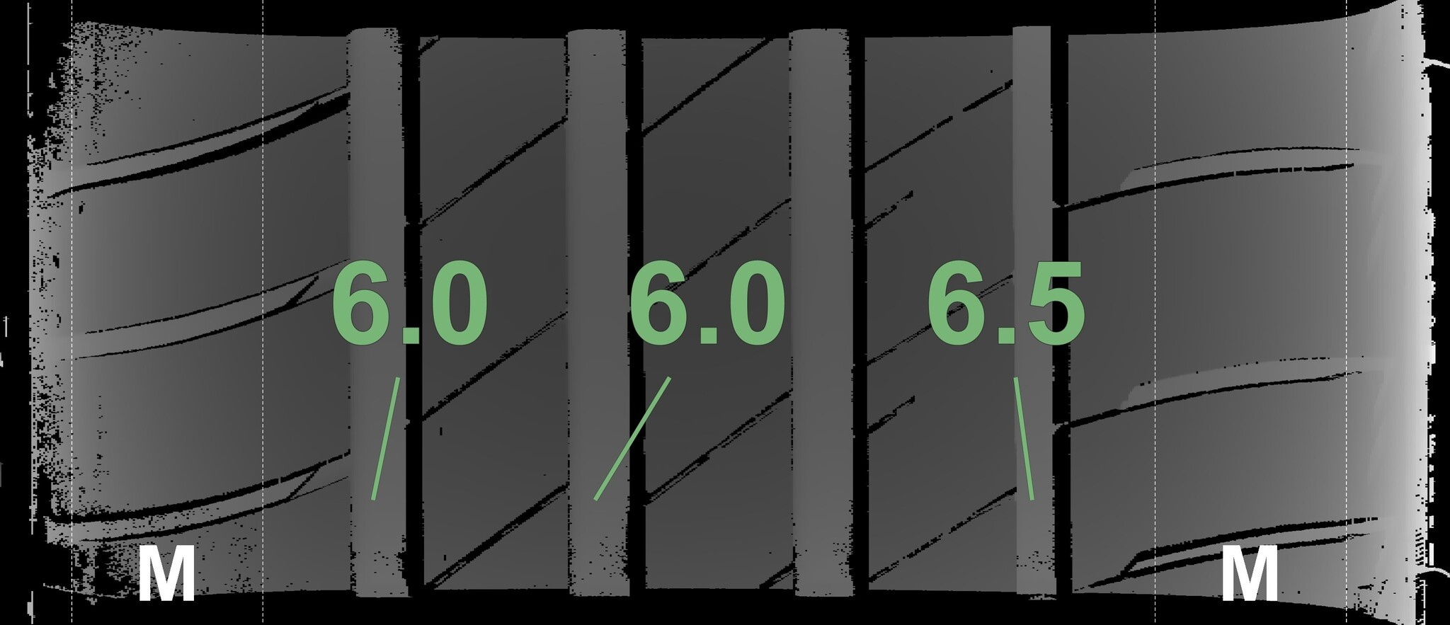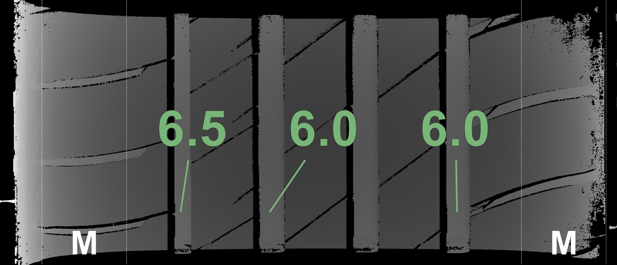 Die gemessenen Profiltiefen und Details zu den Felgen sind oben abgebildet.