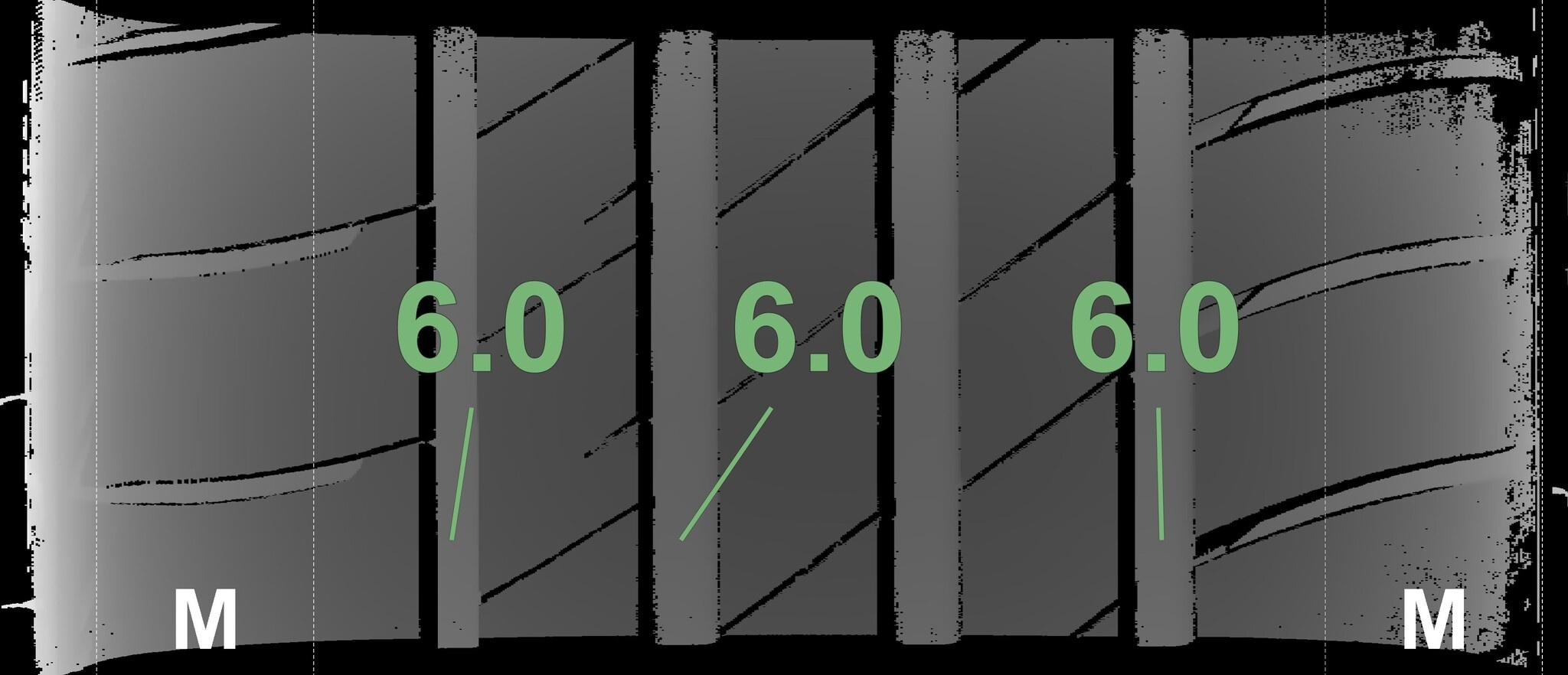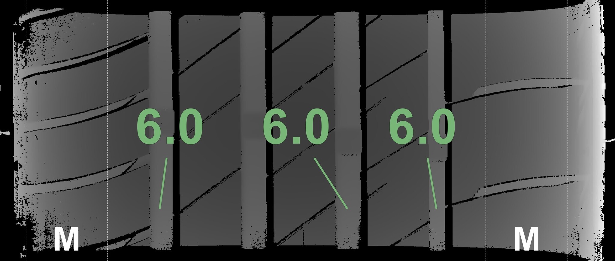 Zustand | Profiltiefe | DOT | Vorderachse Links | Neu | 6,0 mm | 4424 |