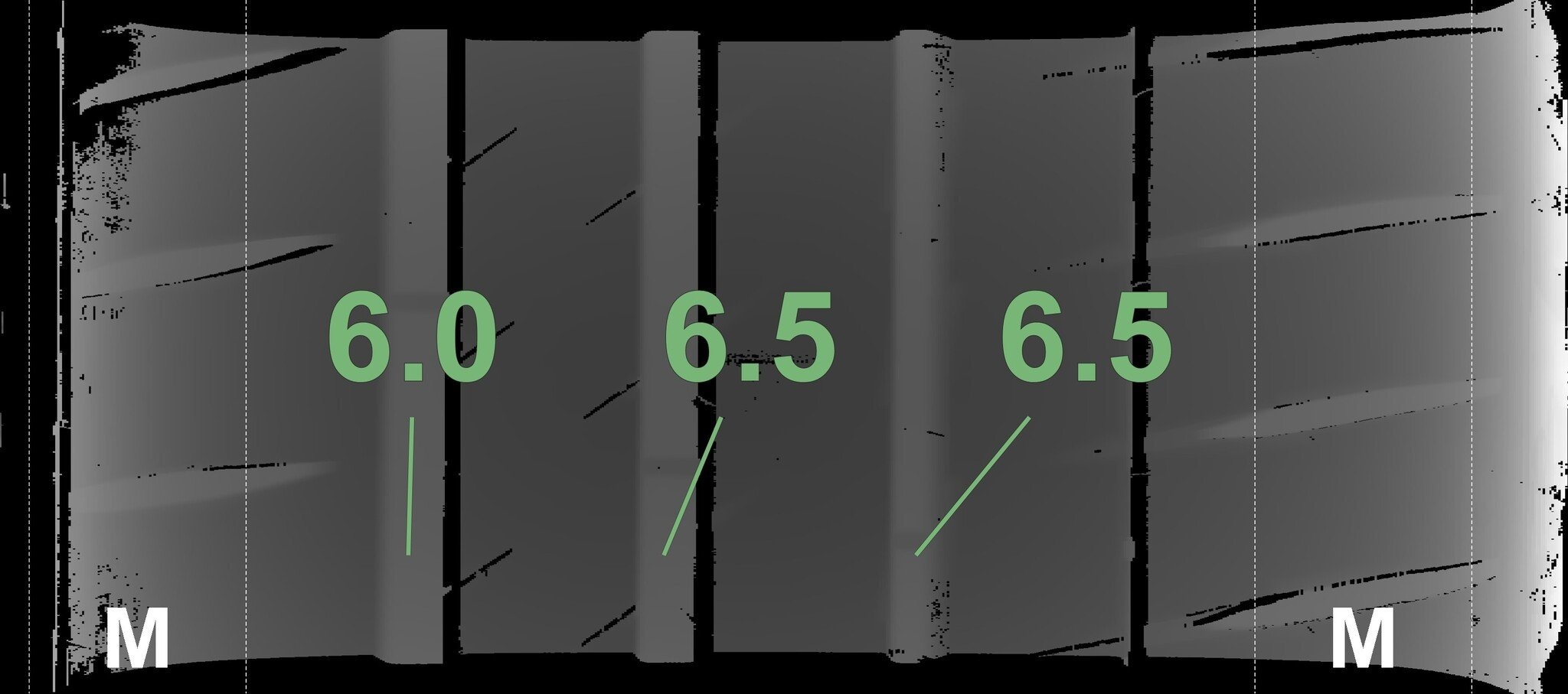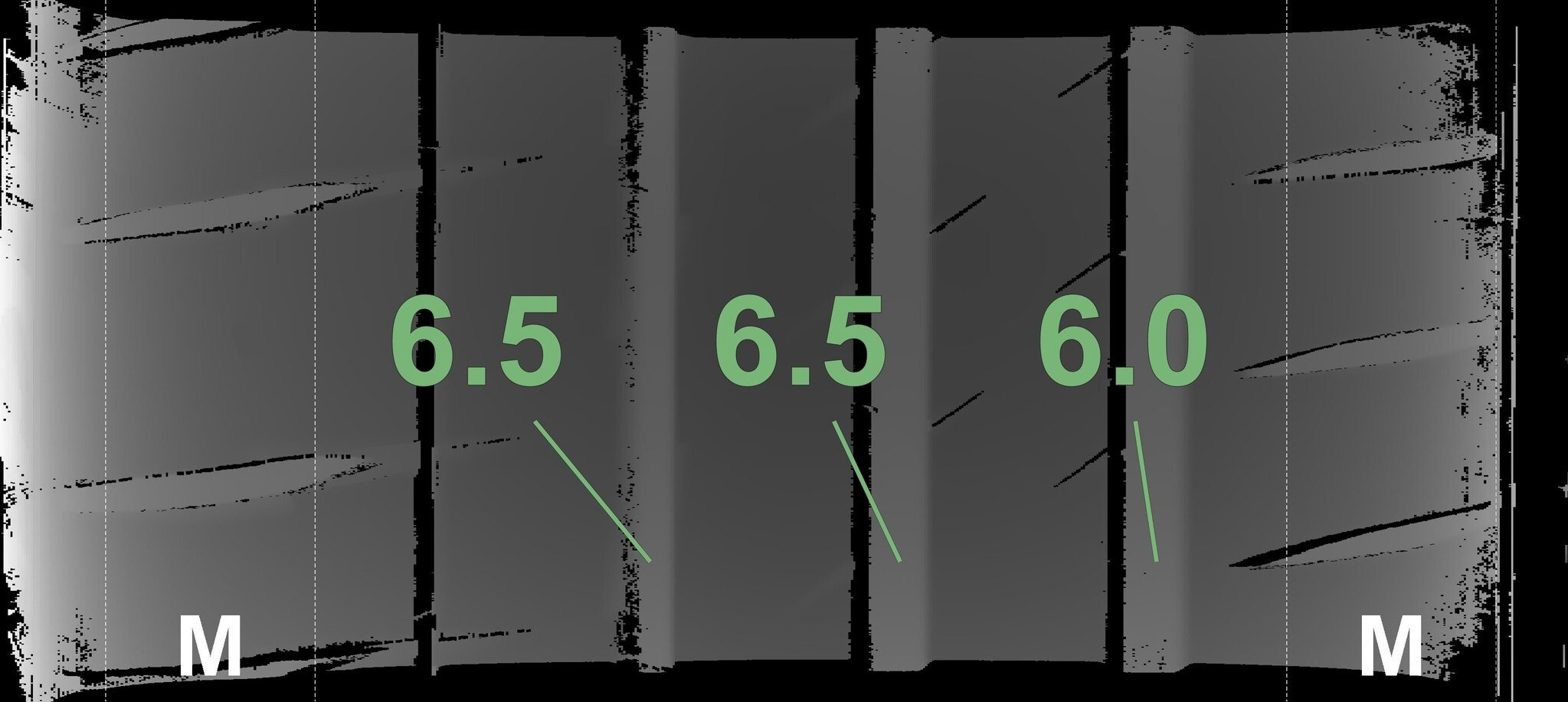 Die gemessenen Profiltiefen und Details zu den Felgen sind oben abgebildet.
