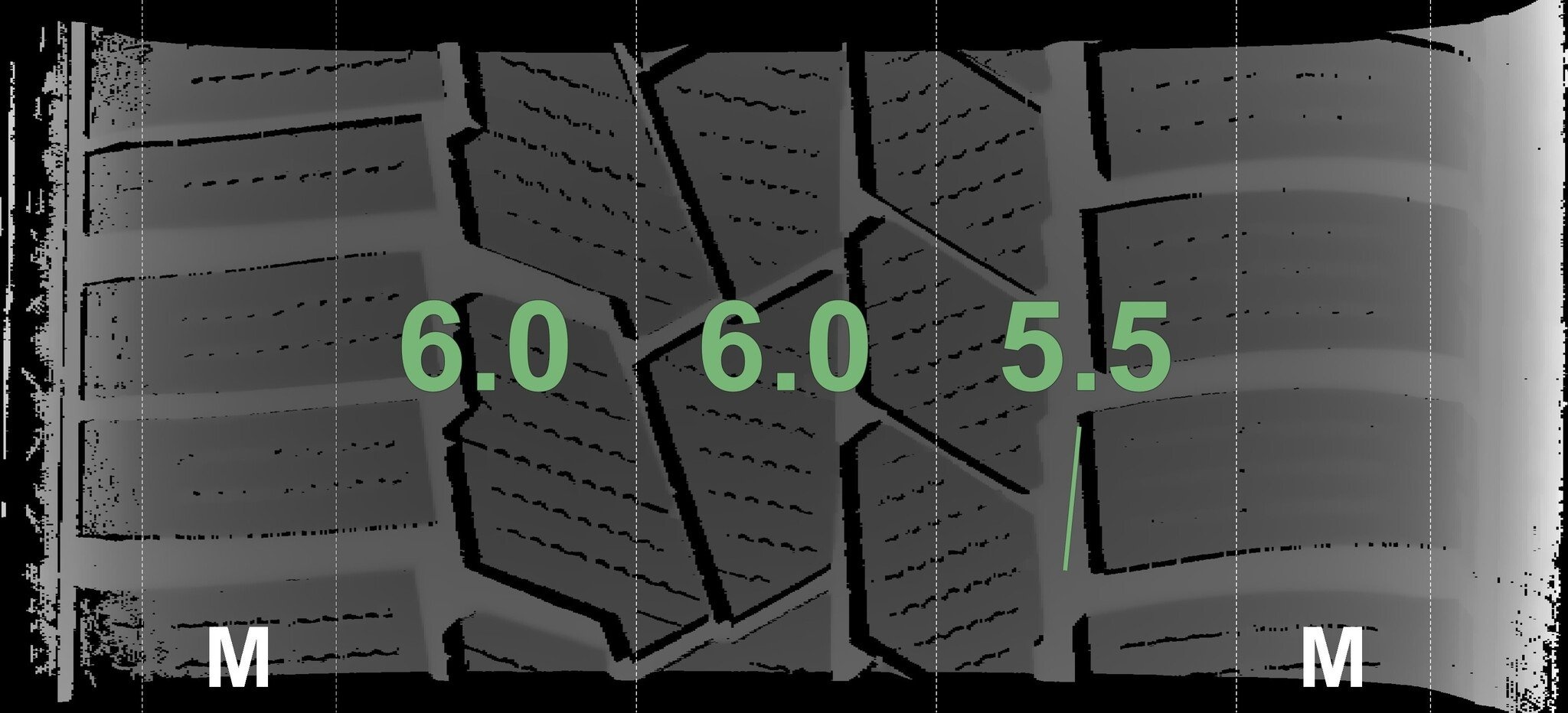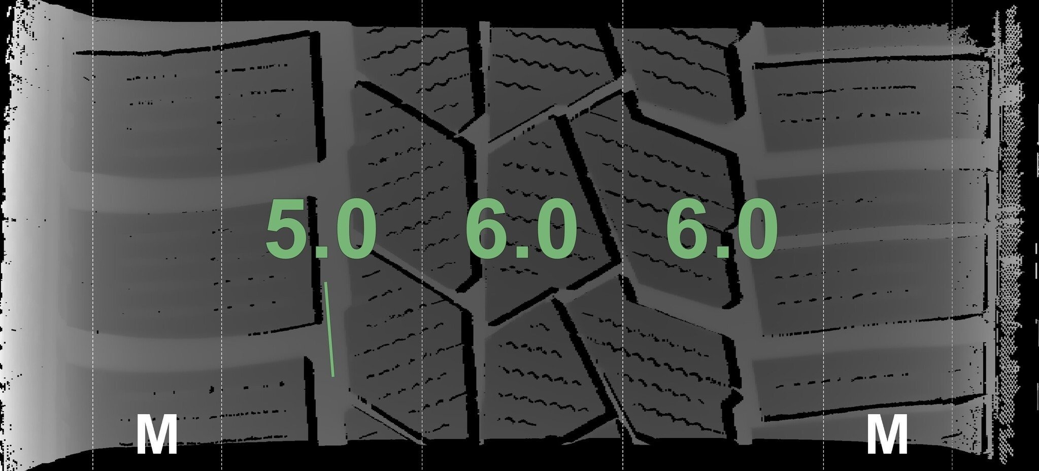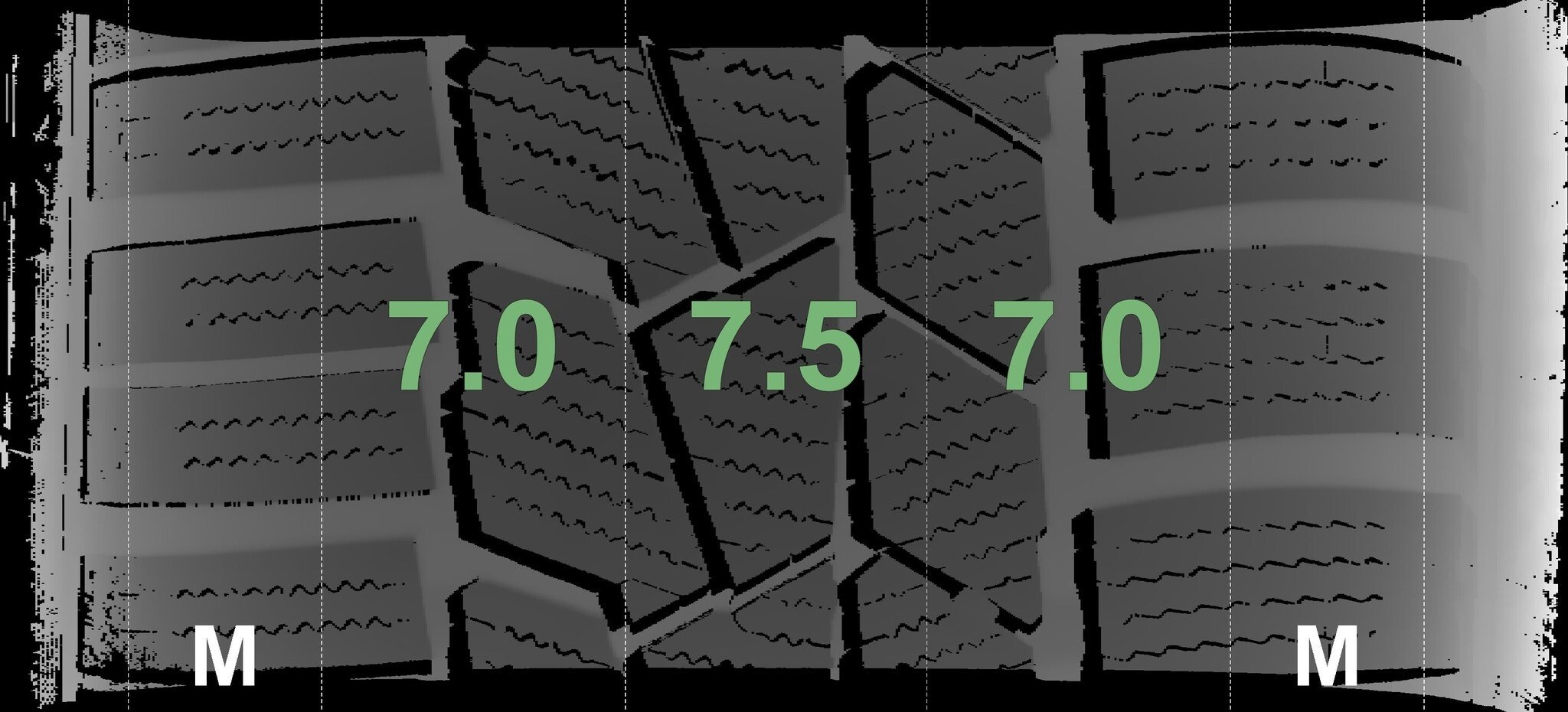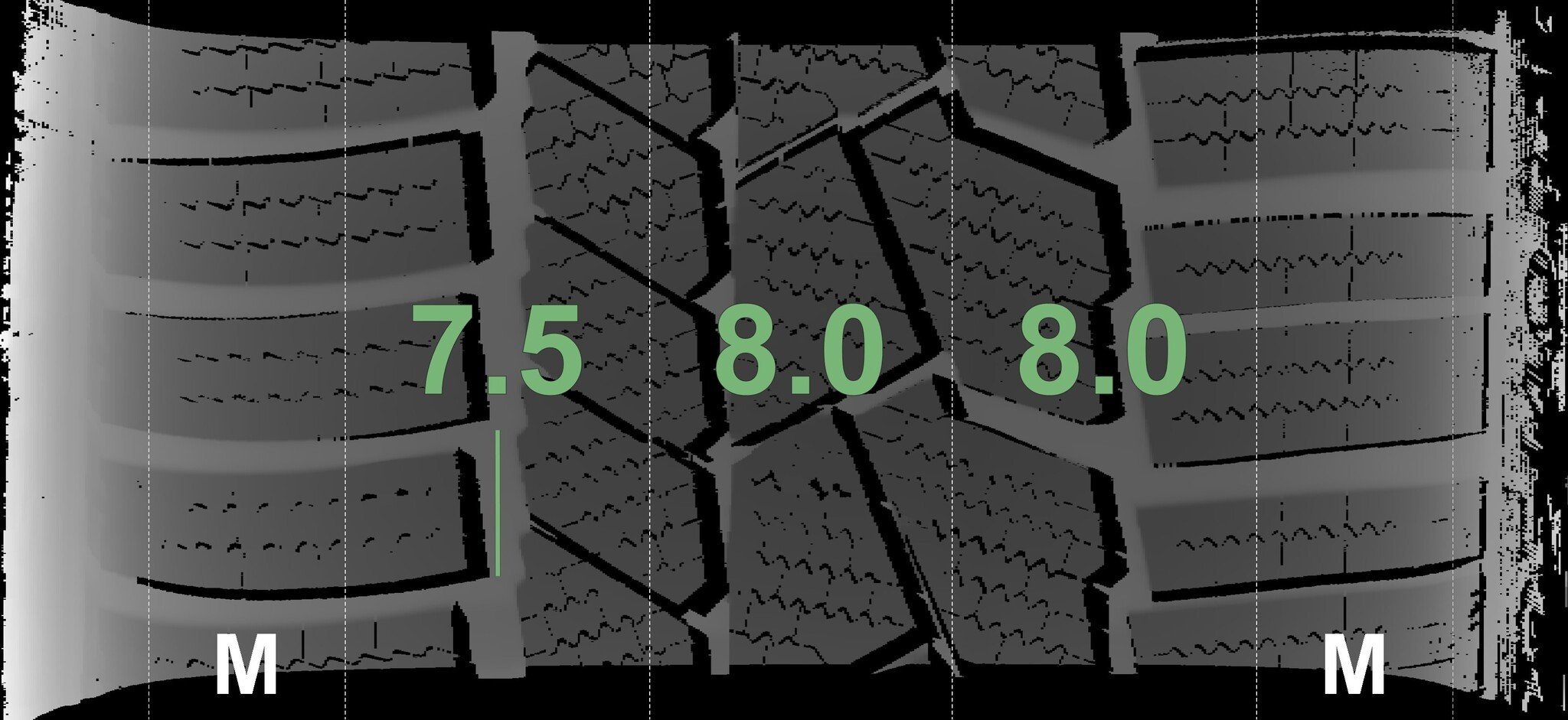 Die gemessenen Profiltiefen und Details der Felgen sind oben abgebildet.