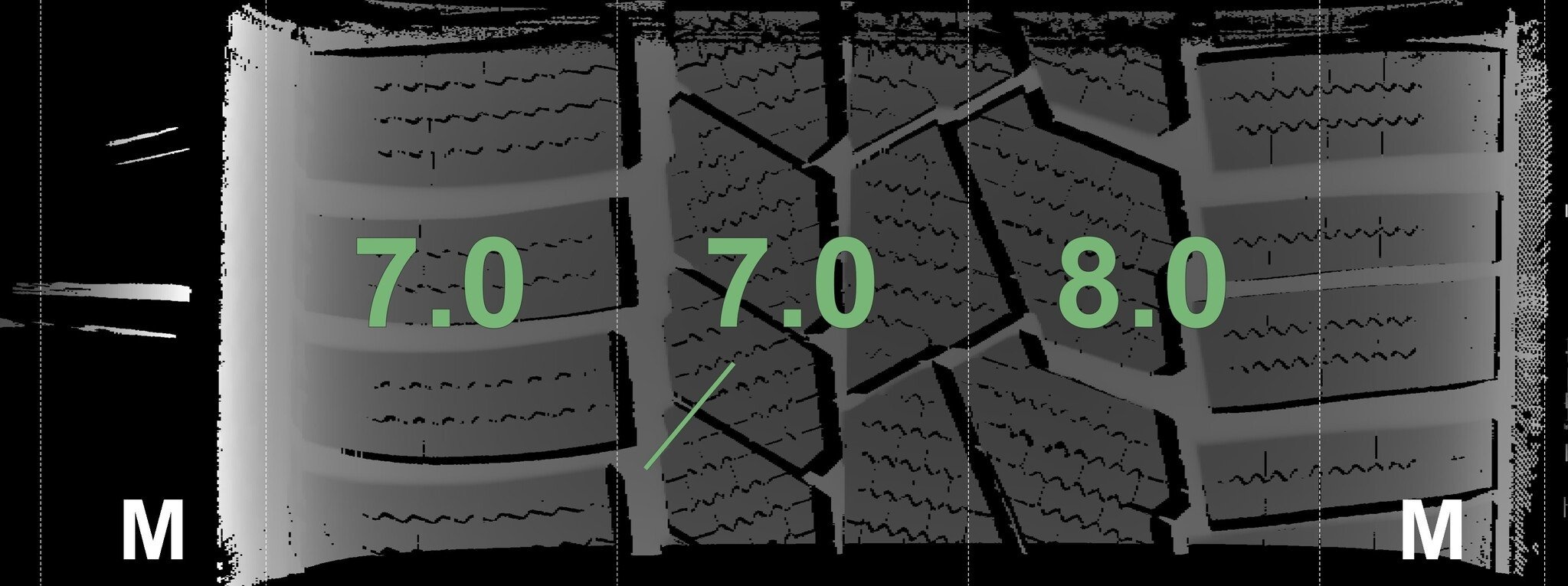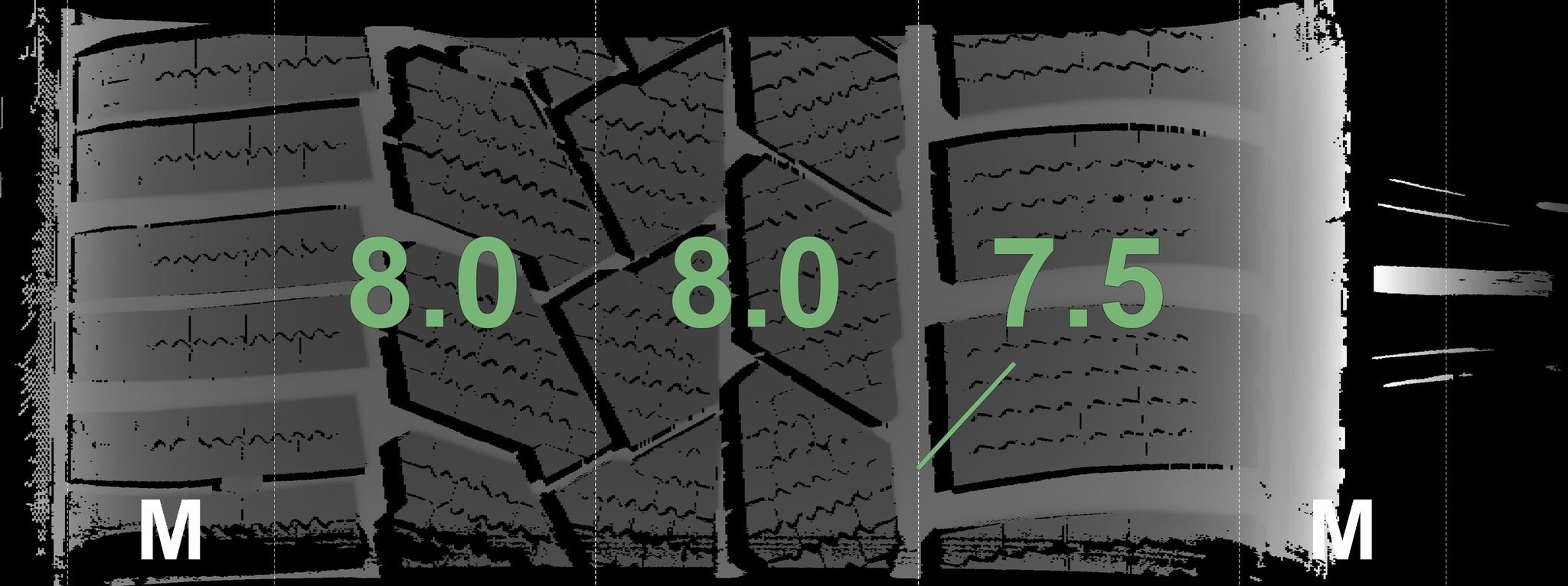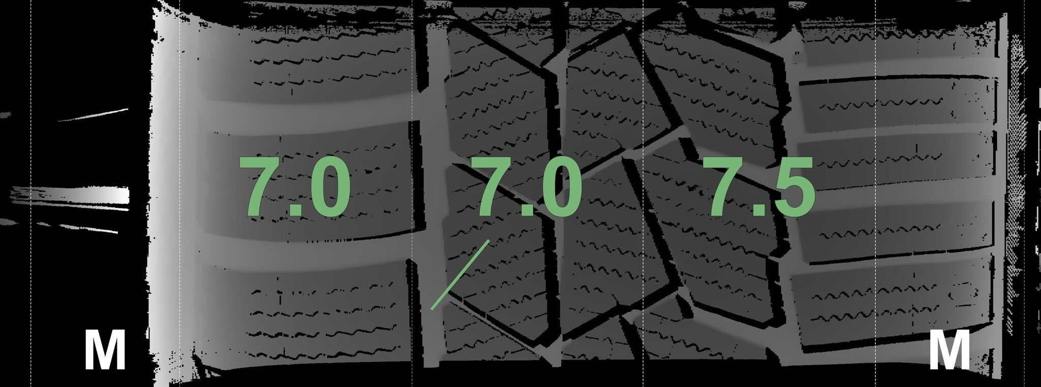 Die gemessenen Profiltiefen und Details zu den Felgen sind oben abgebildet.
