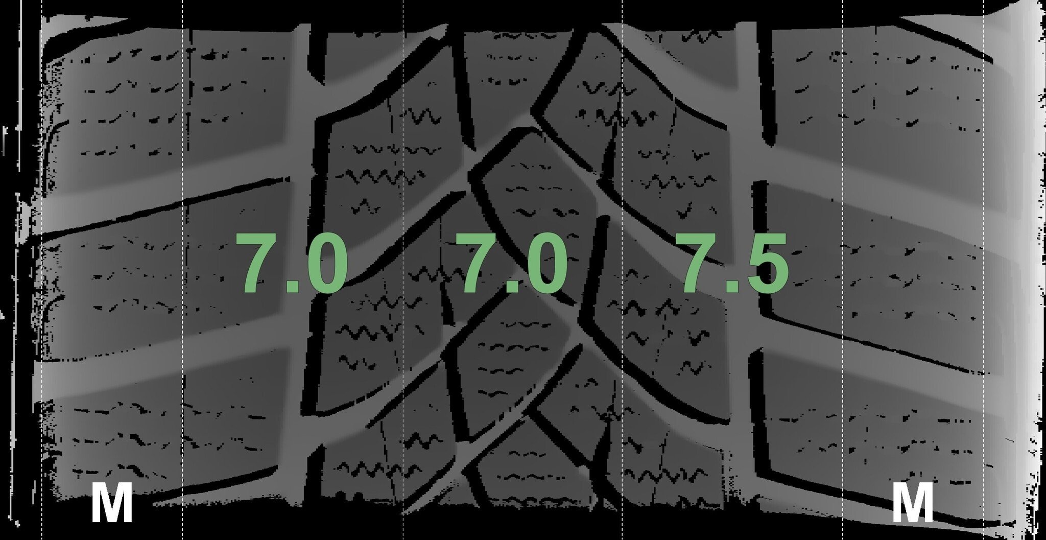 Die gemessenen Profiltiefen und Details zu den Felgen sind oben abgebildet.