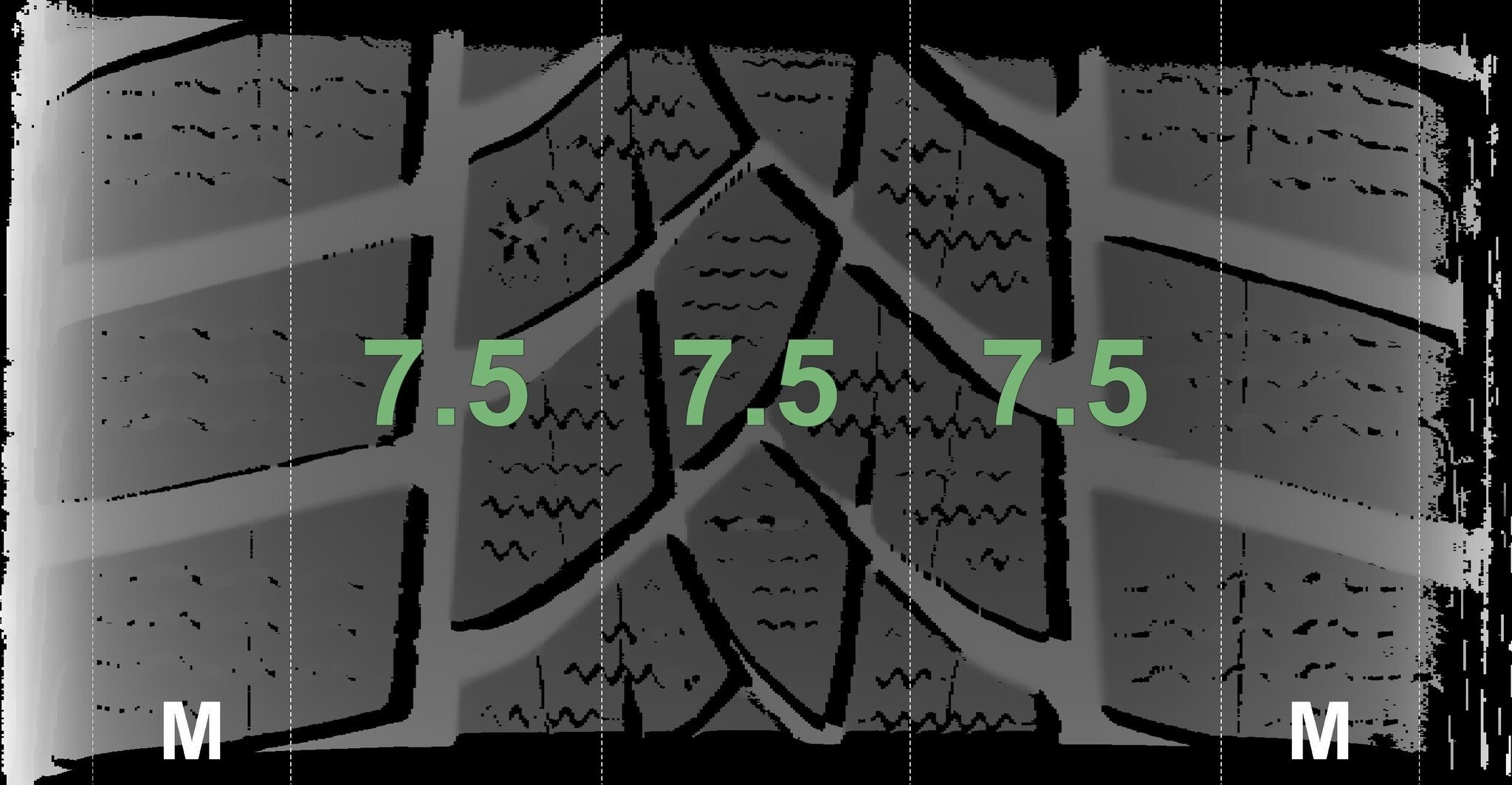 | Zustand | Profiltiefe | DOT | Vorderachse Links | Gebraucht | 7,5 mm | 3023 |
