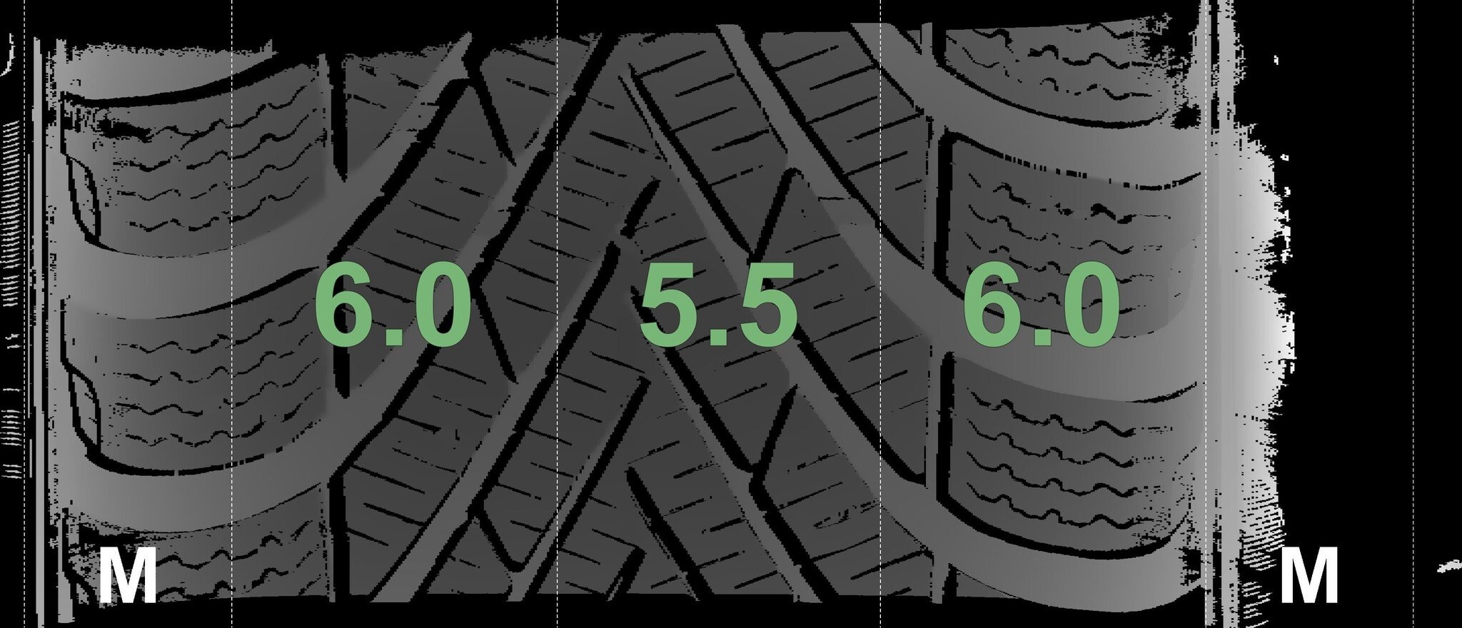 Die gemessenen Profiltiefen und Details der Felgen sind oben abgebildet.