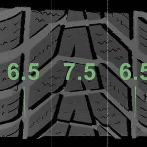 | Zustand | Profiltiefe | DOT | Vorderachse Links | Gebraucht | 6.8 mm | 3824 |