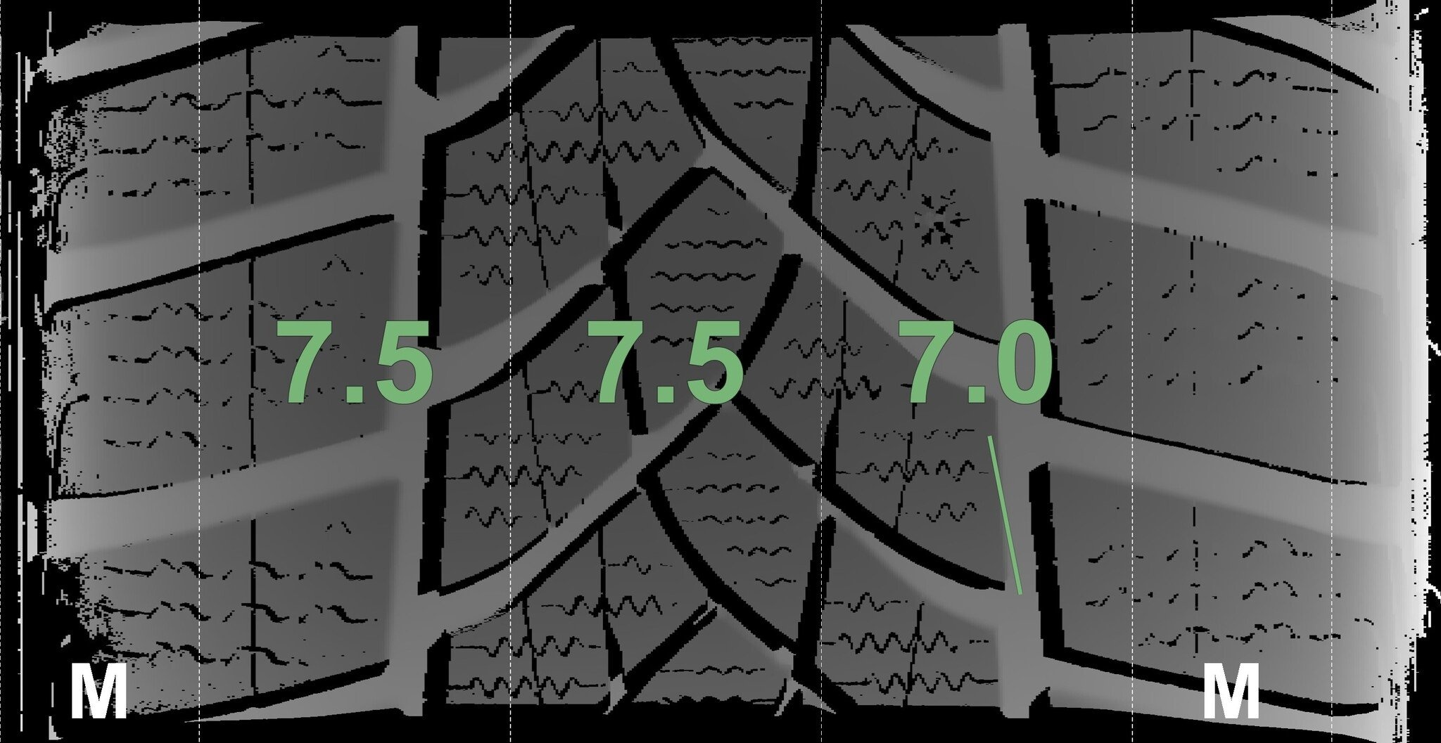 Die gemessenen Profiltiefen und Details zu den Felgen sind oben abgebildet.