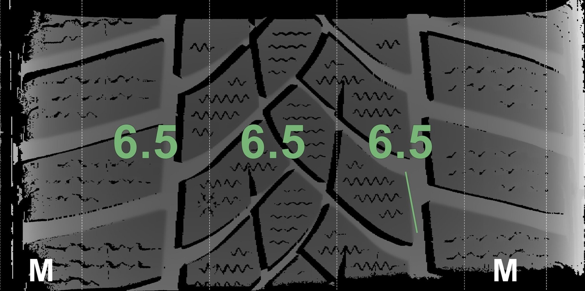 Zustand | Profiltiefe | DOT | Vorderachse Links | Gebraucht | 6,5 mm | 2519 |