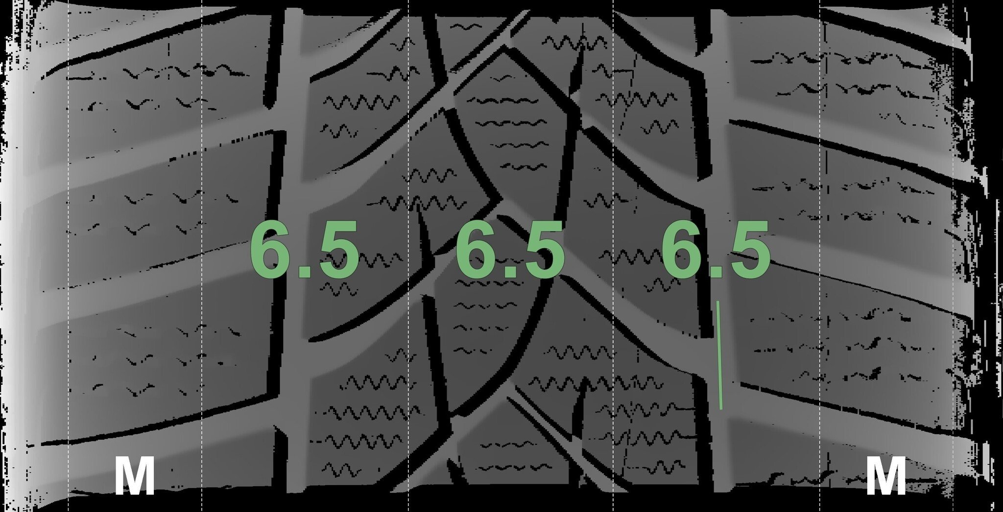 Zustand | Profiltiefe | DOT | Vorderachse Rechts | Gebraucht | 6,5 mm | 2519 |
