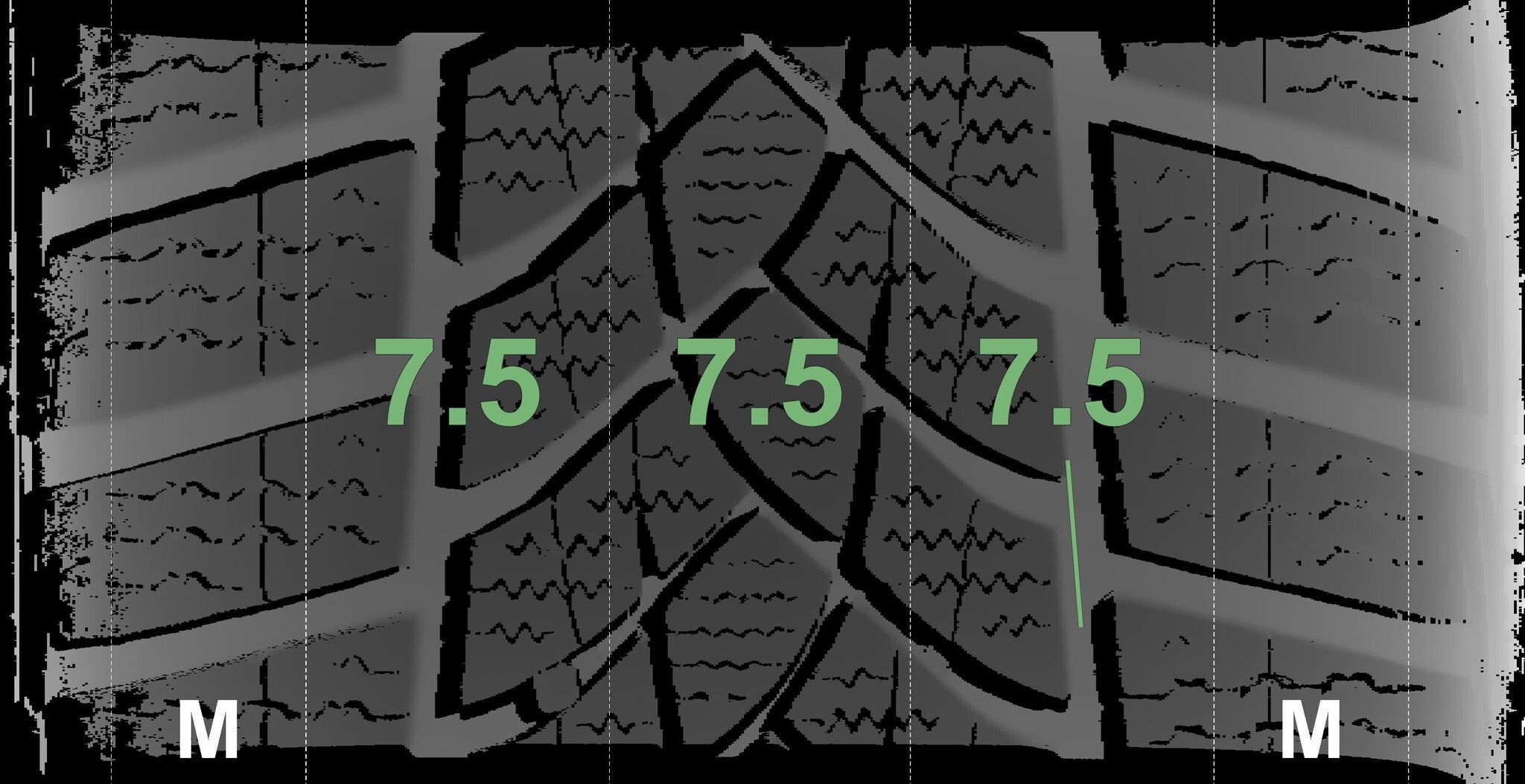 | Zustand | Profiltiefe | DOT | Hinterachse Rechts | Gebraucht | 7,5 mm | 0222 |