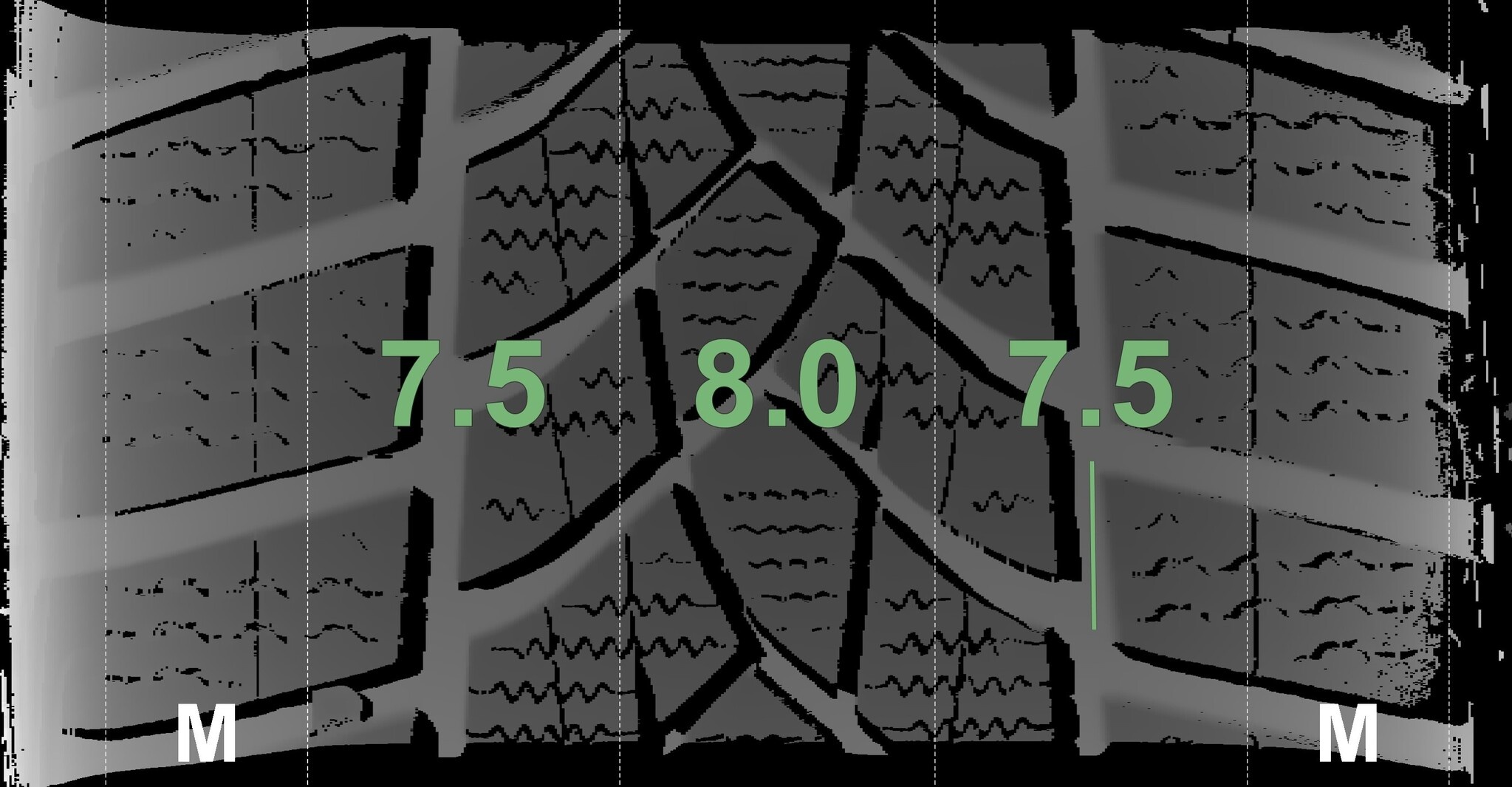 Die gemessenen Profiltiefen und Details zu den Felgen sind oben abgebildet.