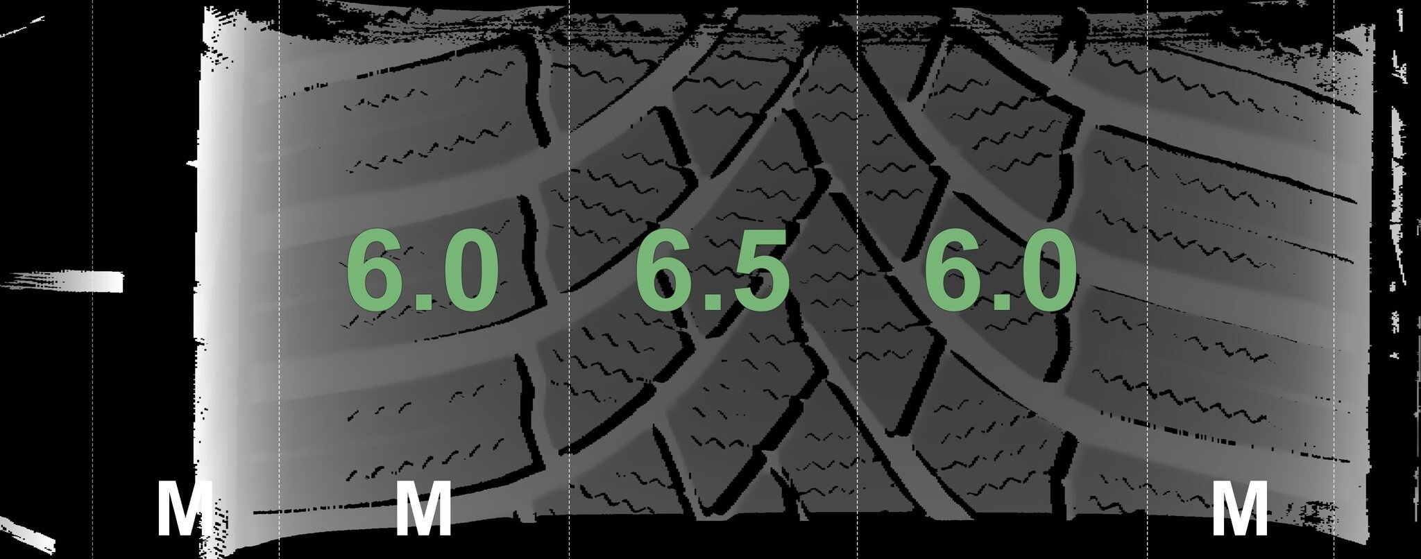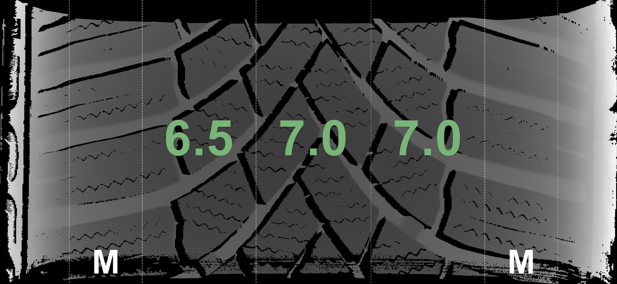 Die gemessenen Profiltiefen und Details zu den Felgen sind oben abgebildet.