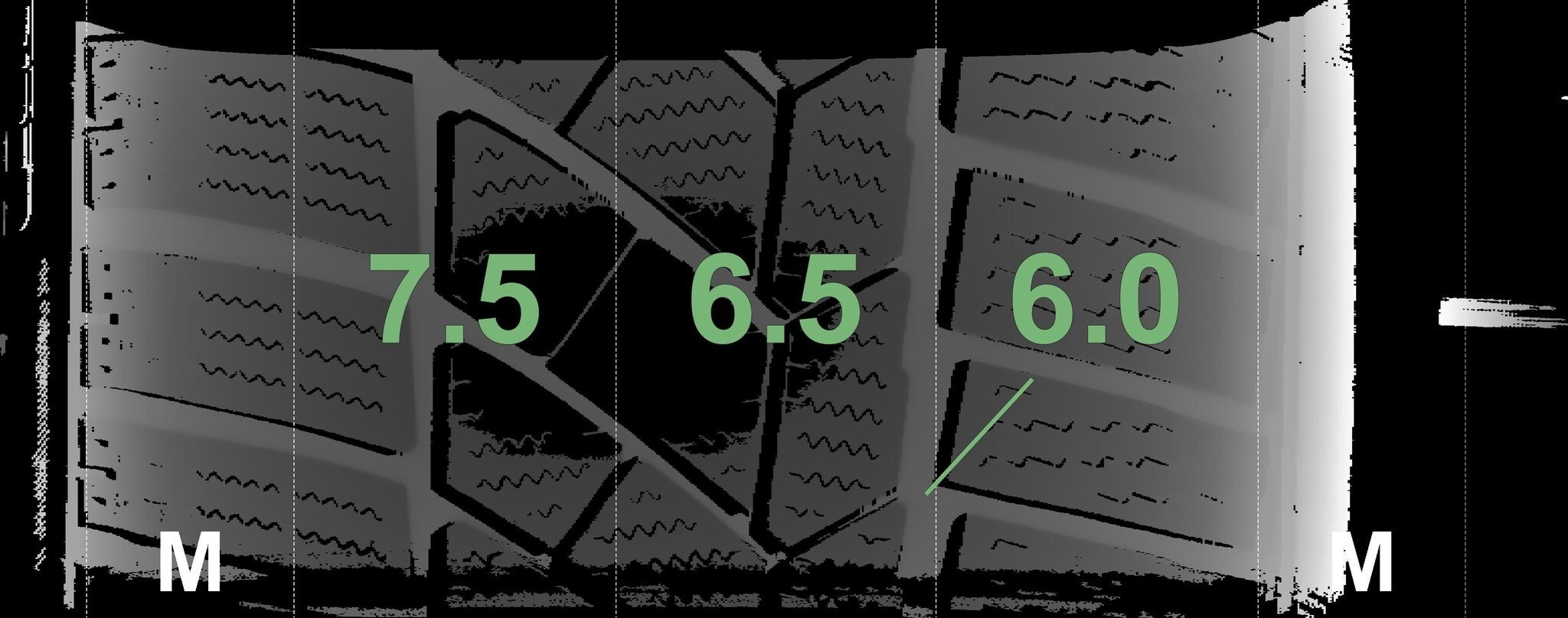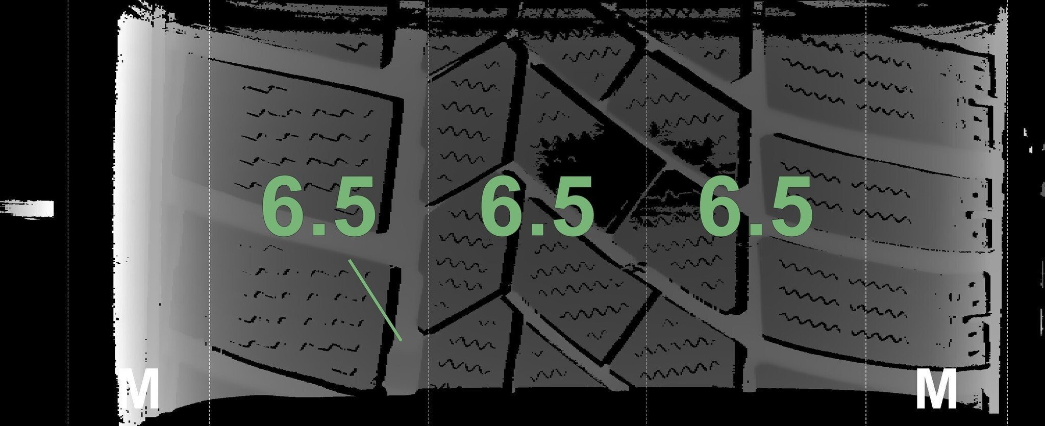 | Zustand | Profiltiefe | DOT | Vorderachse Links | Gebraucht | 6,5 mm | 3021 |