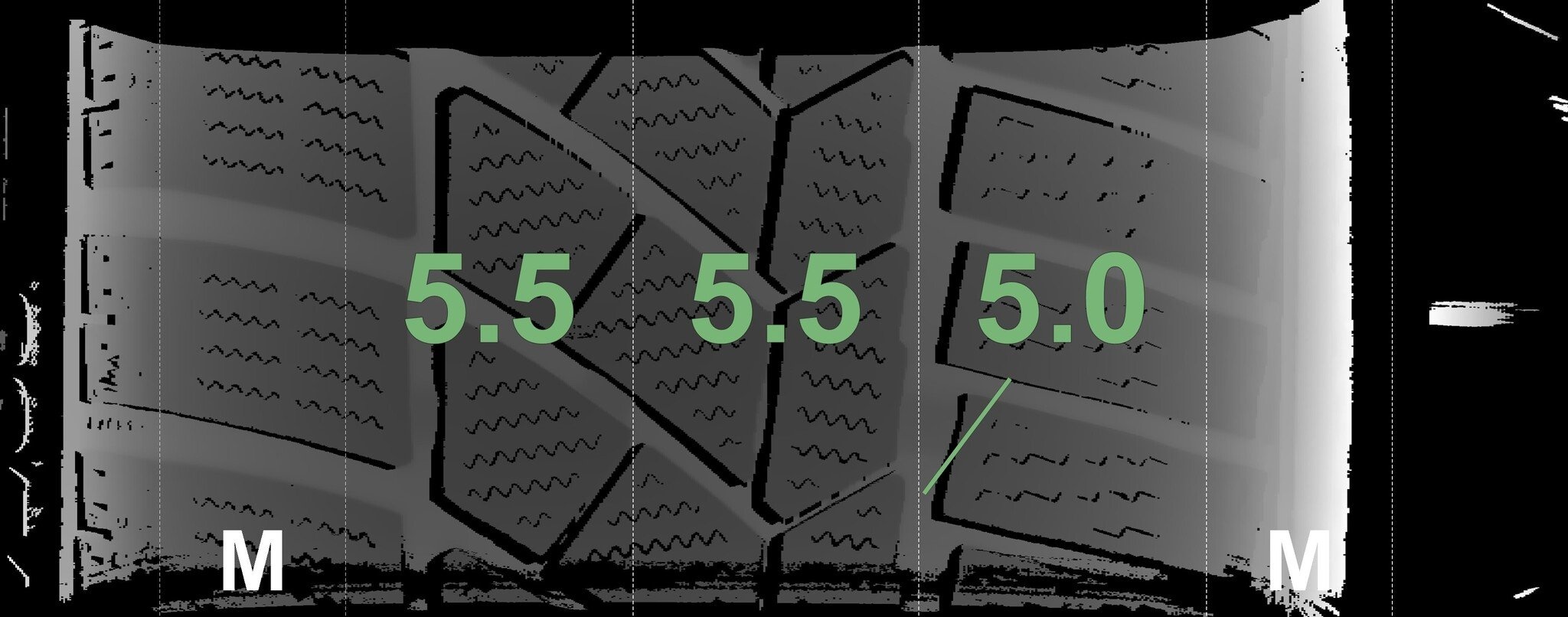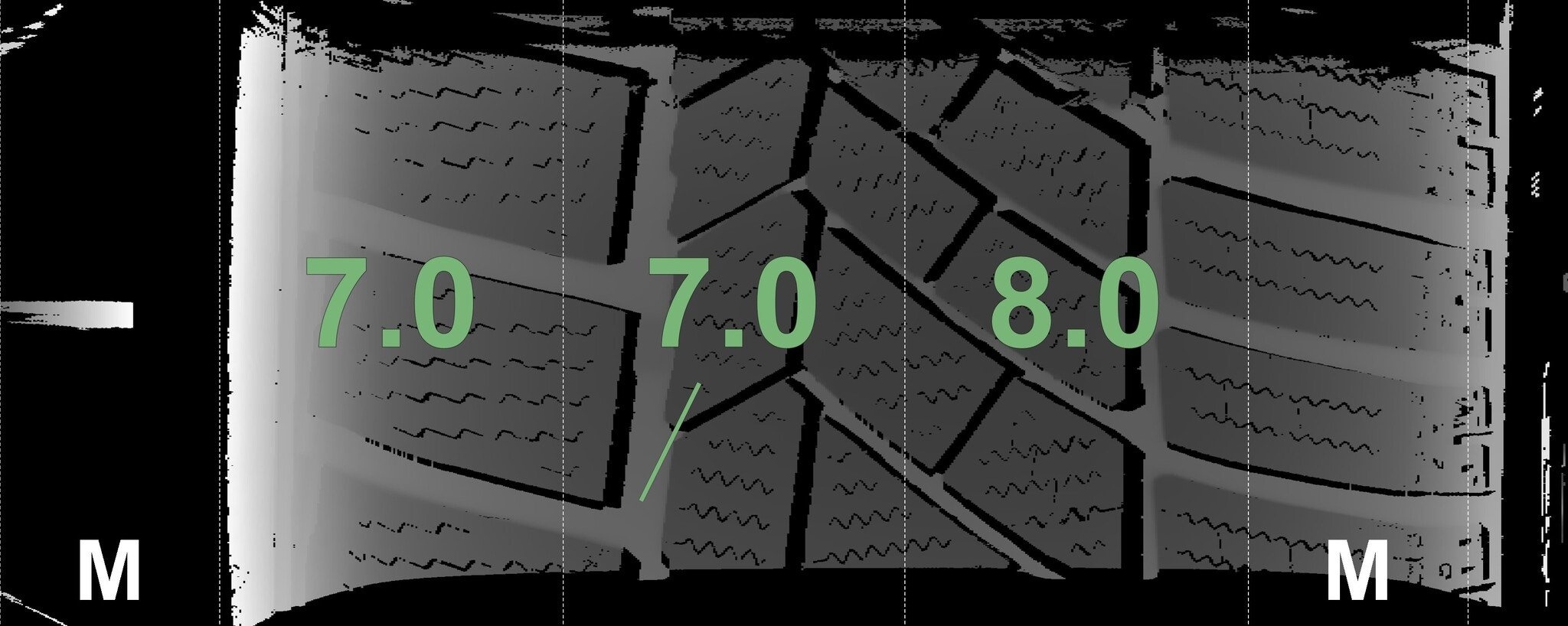 Die gemessenen Profiltiefen und die Details der Felgen sind oben dargestellt.
