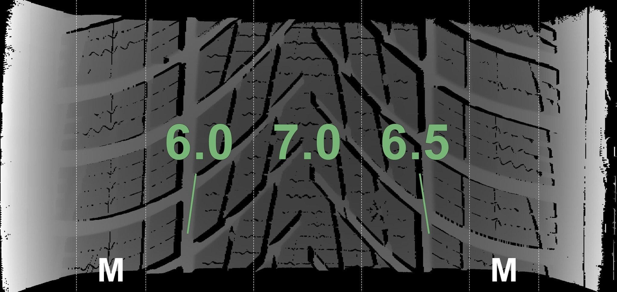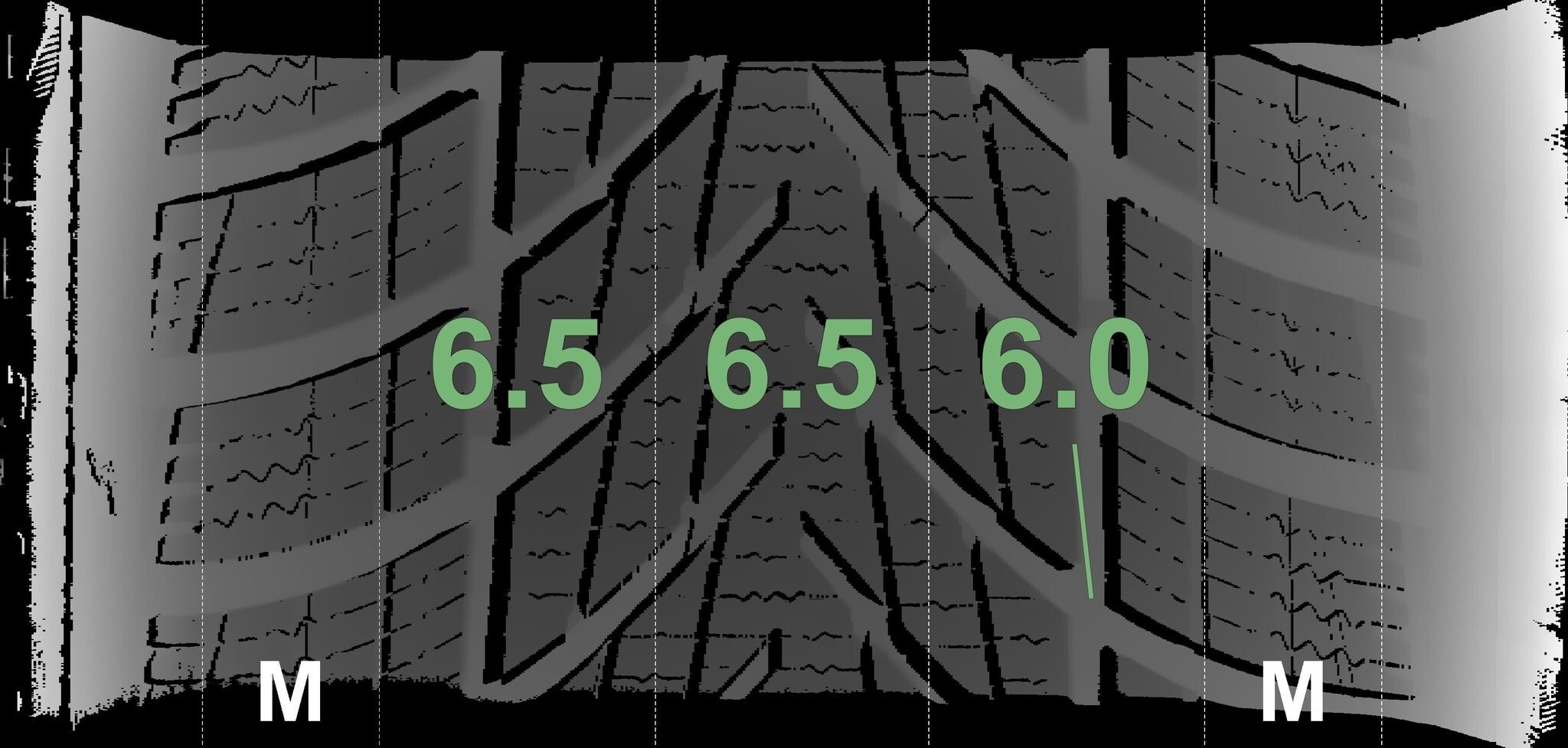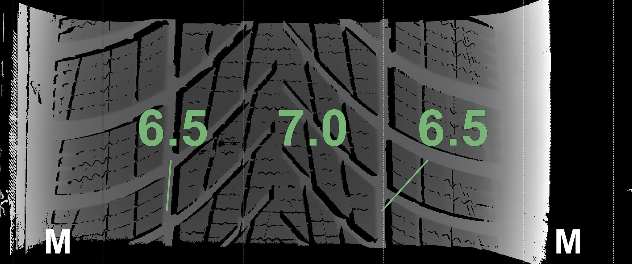 Die gemessenen Profiltiefen und Details zu den Felgen sind oben abgebildet.